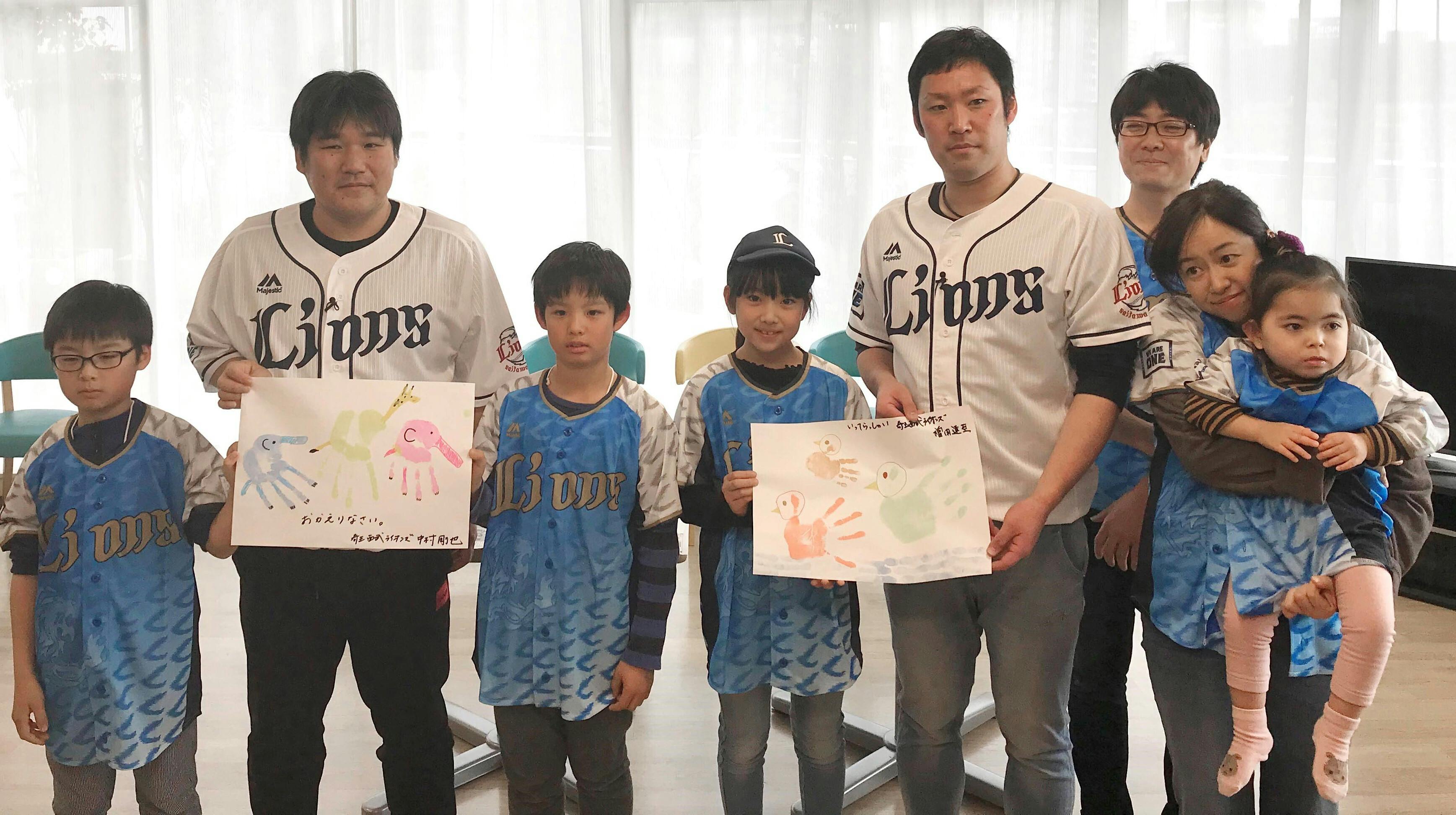2020年1月には中村選手と増田投手がさいたまハウスに、2019年シーズンの成績に応じた寄付金を贈呈に訪れ、ハウスを利用しているお子さんと一緒に手形で絵を作って交流しました。