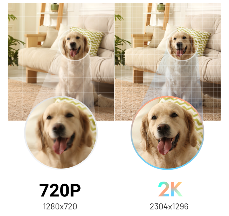 従来の防犯カメラだと画質が良くないものも結構あります。スマホになれている私達からするとある程度の画質じゃないと満足できなくなっていのが本音ですよね。Vacos Cam PTの画質はフルハイビジョンを超える2K(2304×1296)だから、画質がきれい。対象物を鮮明に映し出します。