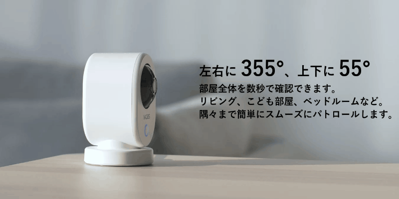 左右に355°、上下に55°レンズが動くので、ほとんど死角がありません。
