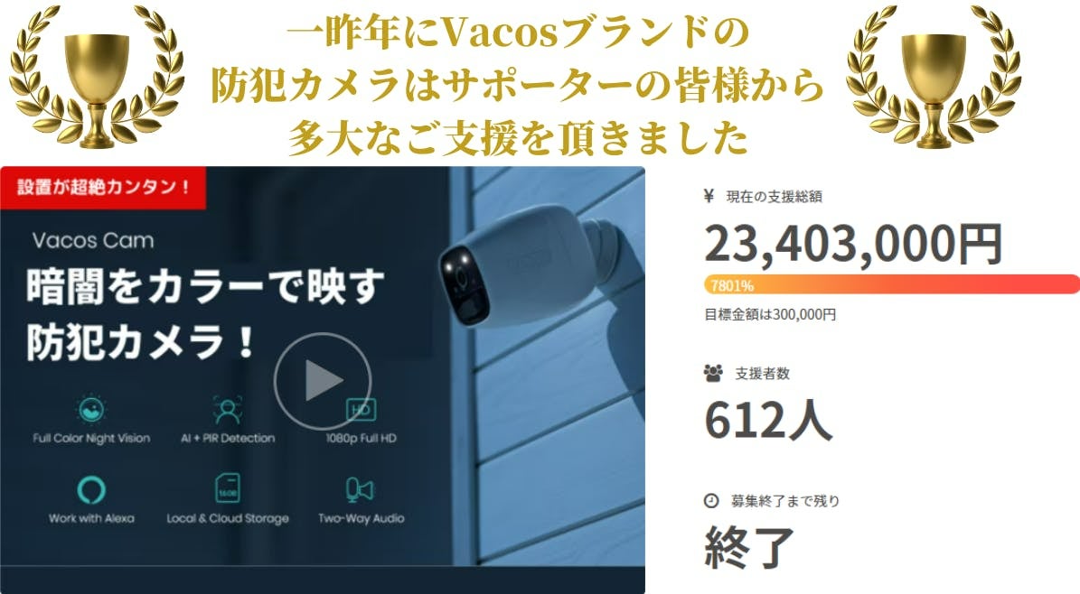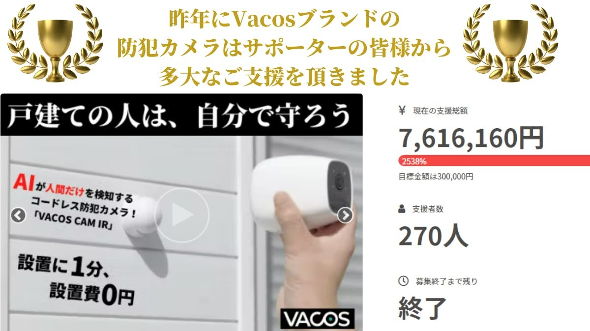 前回、前々回とCAMPFIREにて【Vacos】ブランドの防犯カメラをご紹介させていただいたところ、支援者の皆様から多大なご支援を頂きましたこと、改めて感謝を申し上げます。