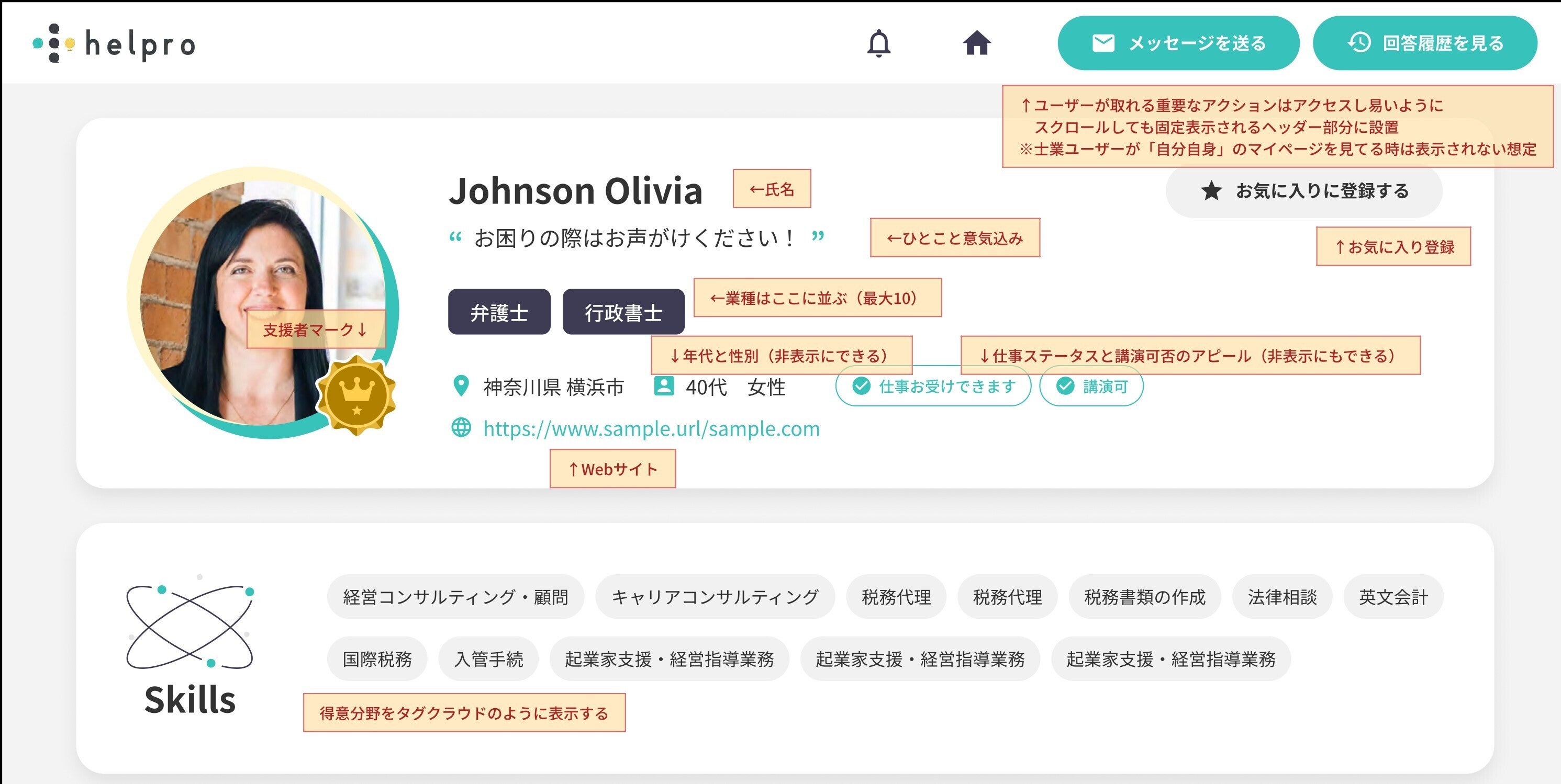 ダイレクトでフランク。士業さんのための全く新しい拠点。顧客と士業を繋ぐプラットフォーム【ヘルプロ】。多忙な士業さんとその力を必要とする全ての日本の皆様へ。極限まで相談ハードルを下げたストレスフリーな利用環境。登録者の人柄を可視化。誠実な人が勝てる信頼貯蓄システム。完全無料。9/1スタート。