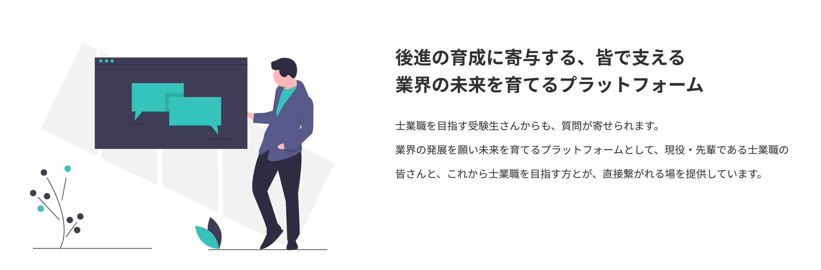 質問は士業さんの元に届きます。ぜひ回答ください。回答された履歴は士業登録者本人のプロフィールに紐づけられます。それをサイトの訪問者はいつでも閲覧できます。誠意をもった回答は未来の顧客に大きな信頼をもたらすでしょう。