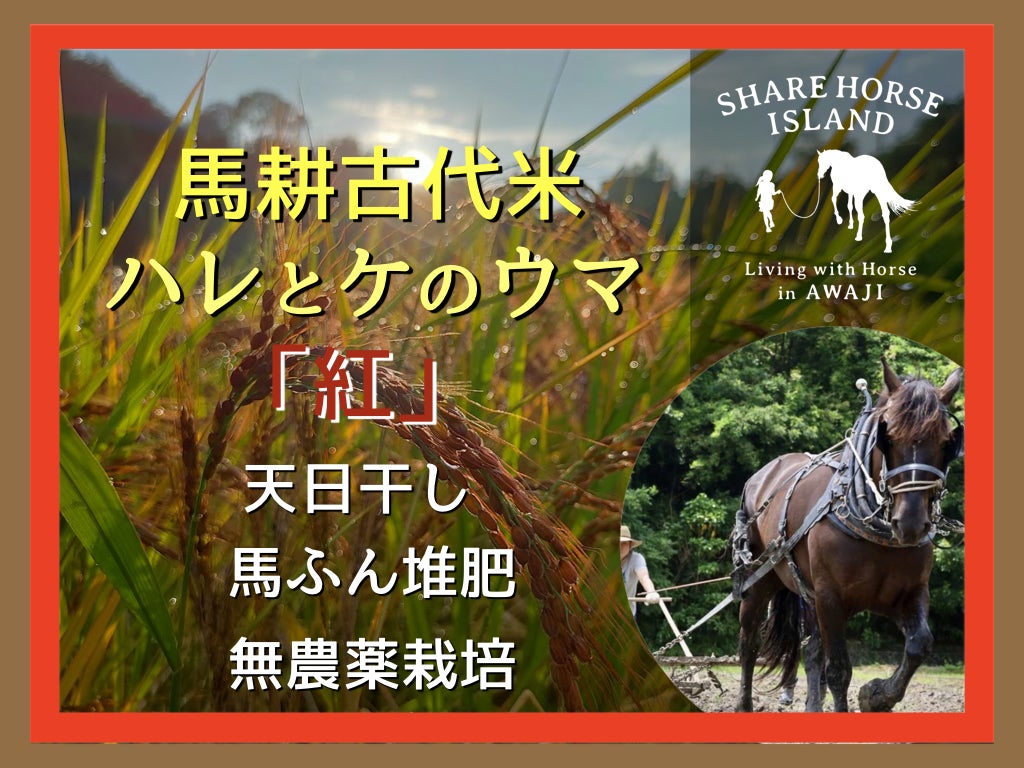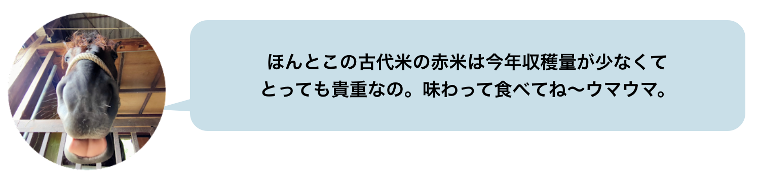 また「がっつり馬耕たんぼ」の古代米の赤米を、馬耕米 ハレとケのウマ「紅」としています。