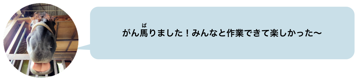 そのタイミングに地元の子どもたちを牧場に招待して、非日常な存在の馬を少しでも身近に感じてもらいたいと思います。