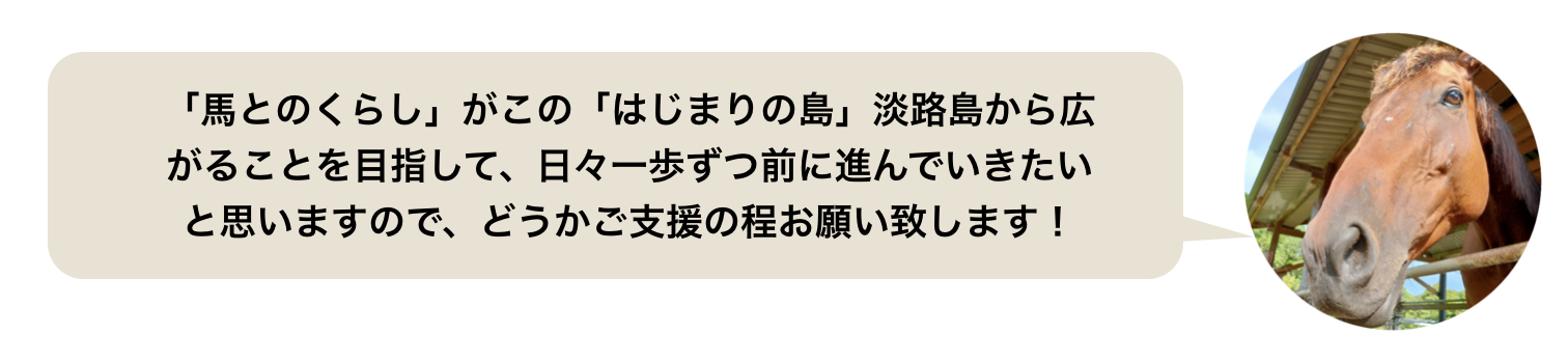 淡路島で馬と身近に接してもらう機会を創出することで、人と馬との新たな関わりや可能性を見出したいと思って活動してきています。