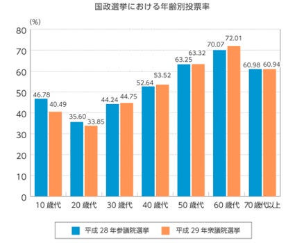 図2──総務省「国政選挙における年齢別投票率」