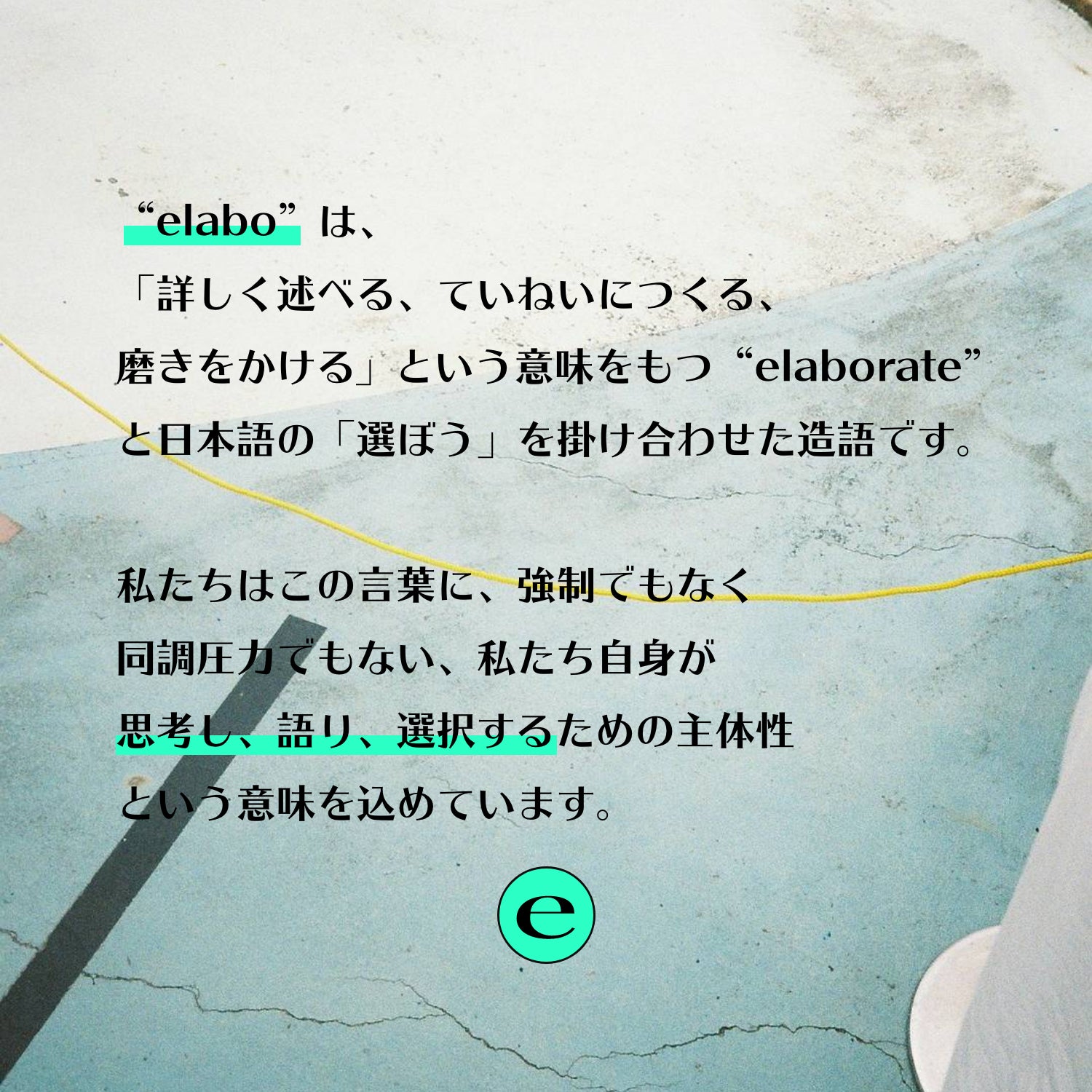 コロナ禍とそのなかでのさまざまな出来事を通じて、私たちの社会が抱えている問題が次々に明らかになってきました。私たち「elabo」は、多くの人々が問題意識を持つようになったこの時を、社会について構造的に捉え直し、さまざまな不正や負のサイクルを断ち切る方法を考えるチャンスと捉えています。希望が描きにくい状況を見直し、価値観の違いによる不条理な暴力によって誰かが傷つくことのない社会、多様性や流動性が創造を生み出す社会に向け踏み出すきっかけをつくりたいと思い、2021年5月にウェブサイトを開設しました。