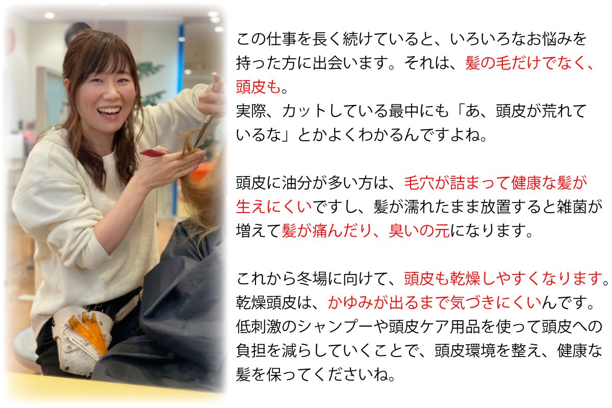 今回、リニューアルするにあたり、頭皮ケアの大切さについて美容師さんにお話を伺うことにしました。
