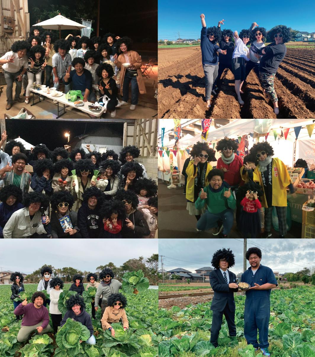 今までに アフロのカツラを被っての農業体験・畑でYOGA・キャンプ・