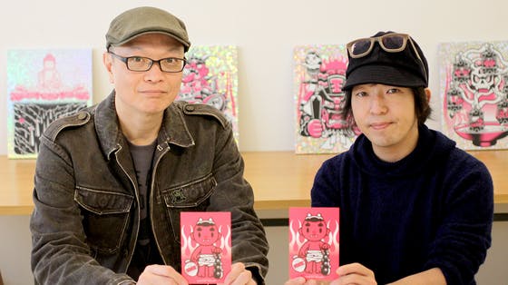 2017/11/17 17:53神戸・元町のど真ん中にまもなく産声をあげる、デザイン&アート専門書店「storage books kobe」。書籍の仕入れ代金として、ここ「CAMPFIRE」上でクラウドファンディングをおこなっています。キャラクターデザインの第一線で活躍されている、株式会社オコサマスター代表・程 亮介さんも、その支援者のひとり。 11月24日からstorageに併設するギャラリーで個展を開催されます。今まさに作品づくりの真っ最中で、出展作品を携えてインタビューにお答え頂きました。 ここでは書ききれないほどの数々の作品を手掛けてこられた程さん。実は神戸育ちで、現在は地元に拠点を移して活動中なのです。年齢やフィールドは違えど、プロジェクトの発起人・濱さんとは、互いに良い刺激を受けているそうで…。これまでの歩みから、「storage」への期待、はたまたちょっとプライベートなことまで。濱さんも聞き手にまわり、お話をうかがいました。 現代美術から、デザインの世界へ 30歳で、独立の扉を叩く ー程さんの、これまでの歩み…というと壮大なスケールですが、プロフィールをお聞きしてもいいですか? 程:はい。ギャッとまとめてみますね。神戸で育ち、大学は多摩美術大学の絵画科油画専攻で現代美術をやってました。卒業してからは、“自分探し”をしたいなと思った。僕は半分中国人で半分日本人、当時は一体何人かわからなくなって、もう一つの祖国中国に行ってみようと思ってバックパッカーしていました。帰国してうからは作品作りをして、銀座の画廊とかの企画展も決まってた。そんなときに阪神淡路大震災があって実家が無くなり…。僕は長男やけど、東京に住んでて作家活動してるから金なんて無いわけですよ。一方、うちの妹は当時、西宮で准看護師(やったかな?)。電話で「助けに行こうか」って妹に言うたら、「来ても邪魔」と。好きに現代美術をやってる場合じゃないのかもしれないな、と思った結果がデザインやった。 ーそこからいきなりデザインの仕事、ですか? 程:金稼ごうっていうのがまずあったから。当時は新しいかっこええデザインをする錚々たる大先輩方が「原宿にかっこいい事務所があってポルシェに乗ってるらしい」という噂を聞いて(笑)。うわ、デザインって儲かるんや!って単純に思った。さて、じゃあデザインで何をしようかな、と。当時「バーチャファイター」っていうゲームがあって、初めて見たときに「うわ、ポップアートが動いてる!」って衝撃を受けてまた単純に「これをやろう!」と。当時はパソコンなんて個人で買えるような代物じゃなかったから、「ゲームを作ってる会社に行ったら勉強できて、お金ももらえるからいいんちゃうかな」と思って、コンビニでバイト情報誌を買ってみた。そしたら左ページの左上隅にソニック(セガのキャラクター「ソニック・ザ・ヘッジホッグ」)がお馴染みのポーズをとって載ってた。結果、セガの子会社に入社。コンピューターを覚えられるかもしれへんと思って受けたら入れた。それから一年後に3Dの会社に移ってといった具合の20代。 ーその後に、独立されたと。 程:うん。色々なゲーム作ったけど、ゲームの最後にクレジットが出て来るでしょ?でも、読めるか読めないかぐらいのこんな小さい字でしか出ないのがなんか寂しいなと思って、またまた単純に自分の看板背負いたいなと。当時30歳(1998年)の時に右も左も分からないデザインの世界で「有限会社フリフリカンパニー」を立ち上げたんですよ。ホンマに何にも知らんとほぼ勢いで。でも、始めるからには何かに特化する売りを作らなアカン。当時はクラブカルチャーやストリートカルチャーから、当時のボクより更に若いグラフィックデザイナーがどんどん出てきてた。そりゃもうボクには出来ないかっこええデザイナーたちがね。でもボクは30歳、しかもクラブなんて行ったことなかった。彼らみたいなグラフィックでかっこいいことしても負けるなと思って…、 ーそれで、どうされたんですか? 程:自分に影響を与えたものは何なんかをじっくり考えた。小さいころから漫画やアニメが好きやったから「キャラクター」を取り入れようと決めた。その中でも手塚治虫大先生が大好き。手塚治虫大先生が描く“線”がとにかく色気があって艶めかしく素晴らしい。原稿何万枚も描いた漫画の神様やから描ける“線“なんやろね。その“線“を研究した。 色彩はディズニーを研究した。キャラクターに加えて、グラフィックデザインを合わせていこうと。影響を受けてるのが「The Designers Republic」(英)のデザインチームなんやけど…濱さん知ってるよね? 濱:はい。 程:キャラクターとグラフィックデザインをMIXしたものにPOPを掛け合わせたのがボクのスタイルだと決めた。キャラクタを前面に出してデザインで新しいことができないかなと模索していった。以前ゲームを作っていた経験もあって、任天堂ゲームキューブのゲームソフトをゲームデザイナーの西健一さんに誘
