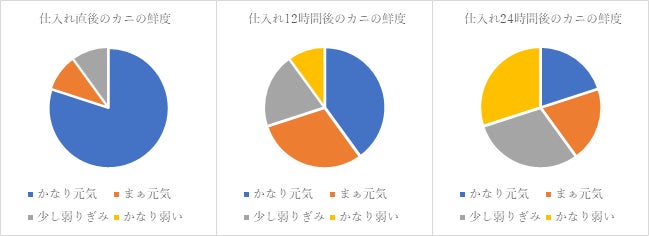 生簀を開発しても、鮮度チェックは引き続き行って行きますので、カニの鮮度状態をチェックしては状況を記録し続け、生簀の中から、鮮度が一番良いカニだけを選びぬき、当日の食材として料理に使おうと思います。