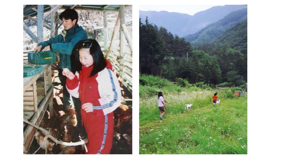 幼少期は鶏・犬・ヤギを飼い、畑と田んぼを耕し、ほぼ自給自足生活!