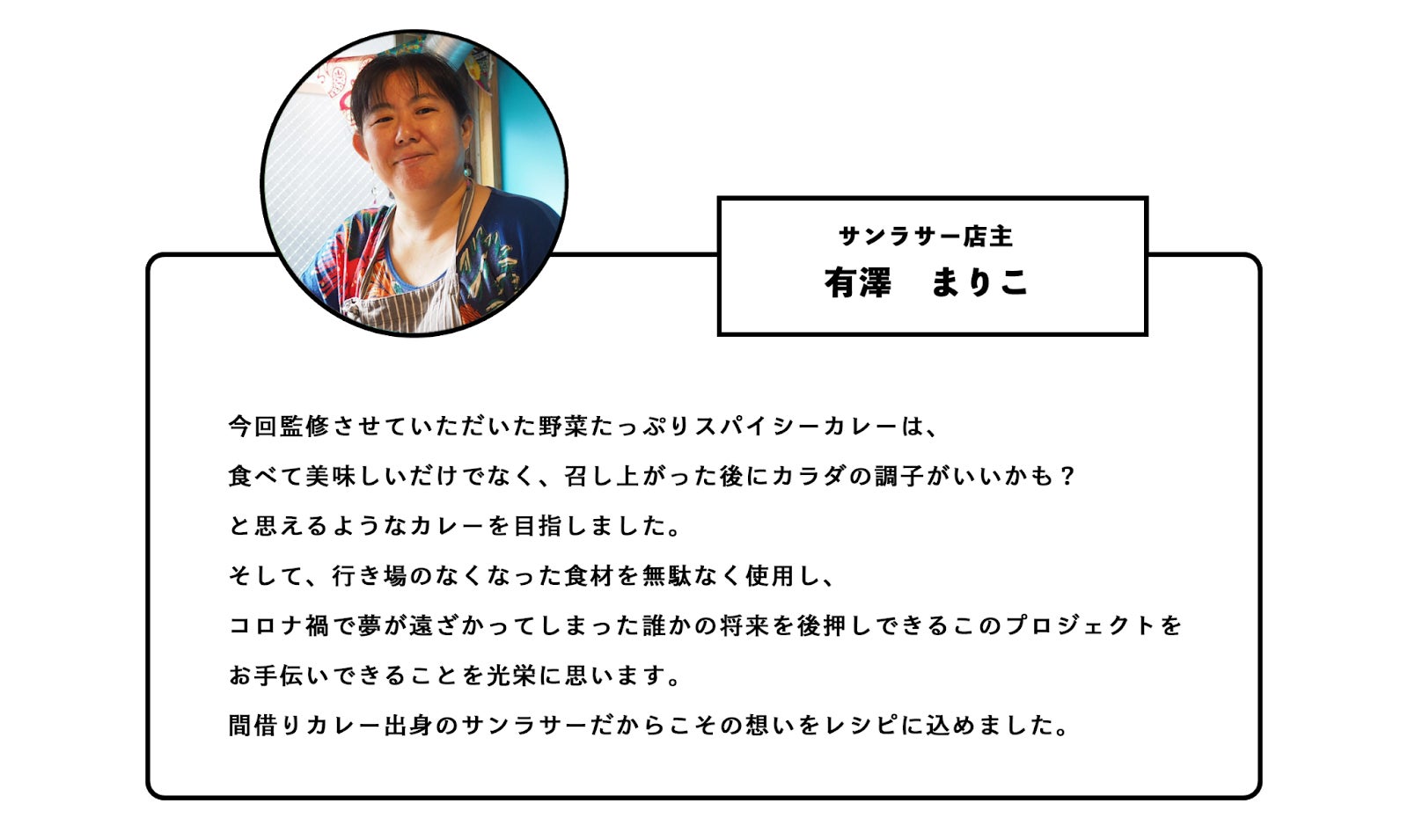 そして、このカレーをリピートしてくれる人たちが多ければ多いほど農家の方は野菜を廃棄する必要がなくなります。