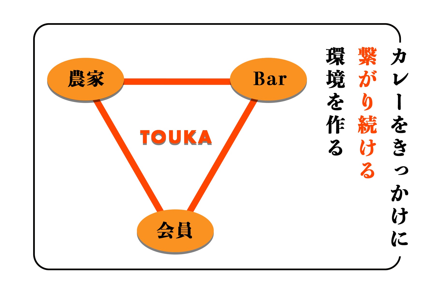 例えば、TOUKA会員であれば直接農家の方に野菜を買いつけたり、バーでイベントをしたり、ご家族を連れて農業体験ができたりなど、カレーを食べるだけに止まらずその後も繋がり続けられるように行動していきます。