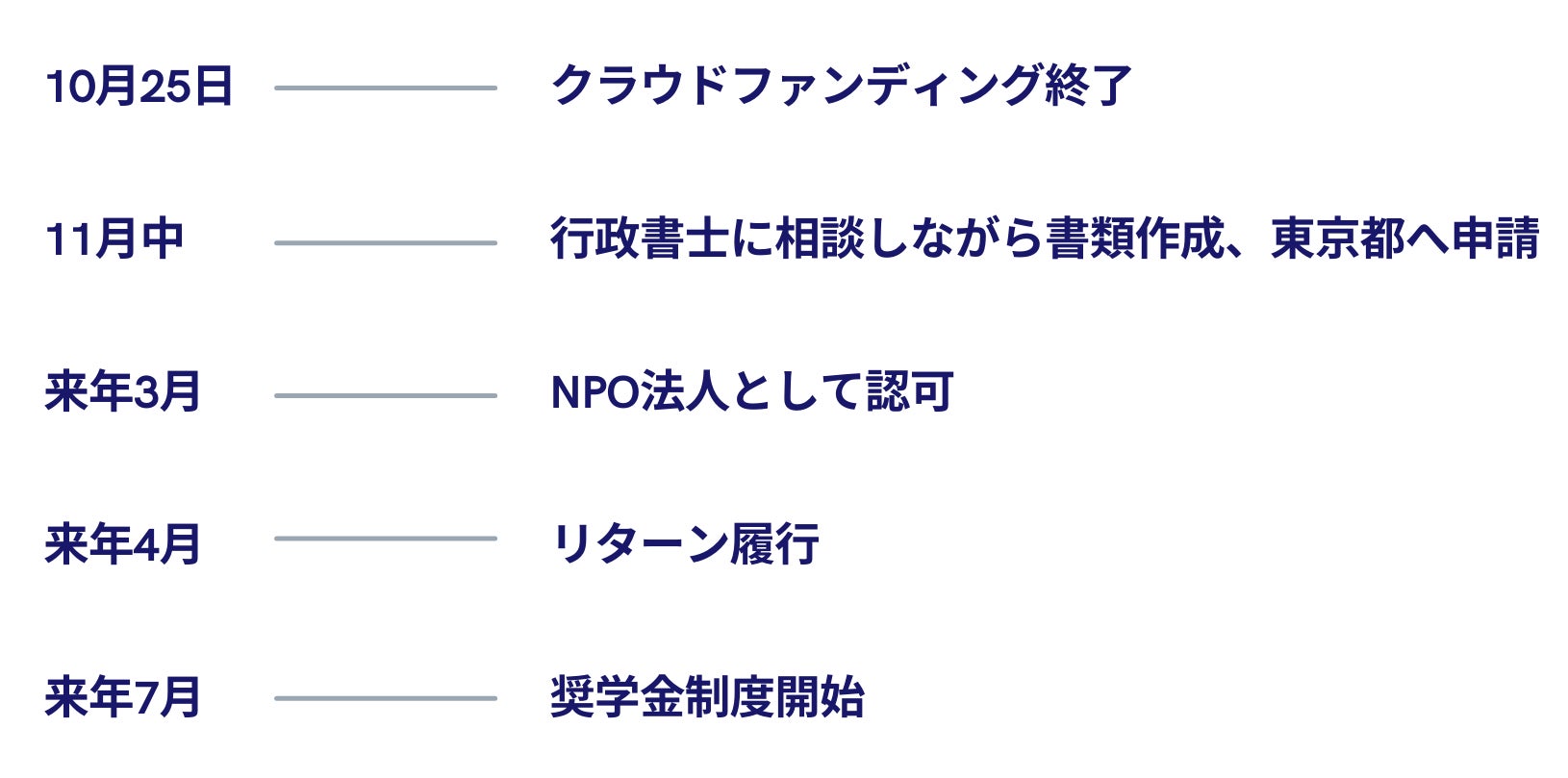 認定NPO法人として認められるまでの過程を報告したいのでリターン履行時期が遅くなってしまうことをご了承くださいませ。