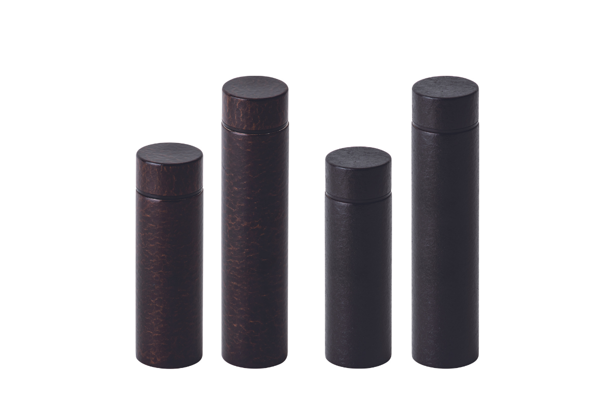 弊社が生業とするお茶道具に古くから使われる技法「一閑張」を、現代の製品であるステンレスボトルに活用することで、今まで見たことのない古いけど新しいボトルを実現しました。