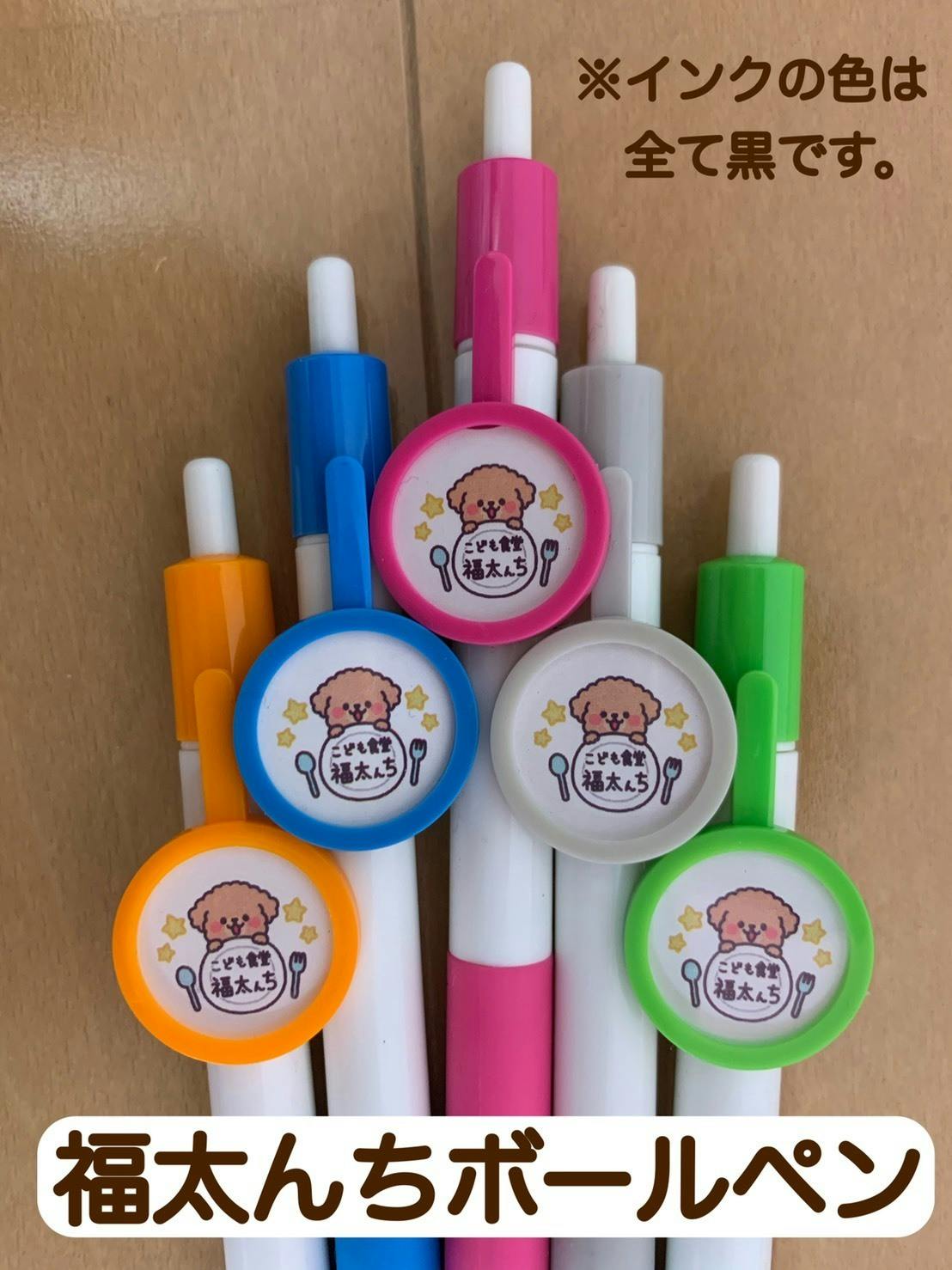 福太んちのロゴ入りボールペン、食堂内にお名前を記載させていただきます。