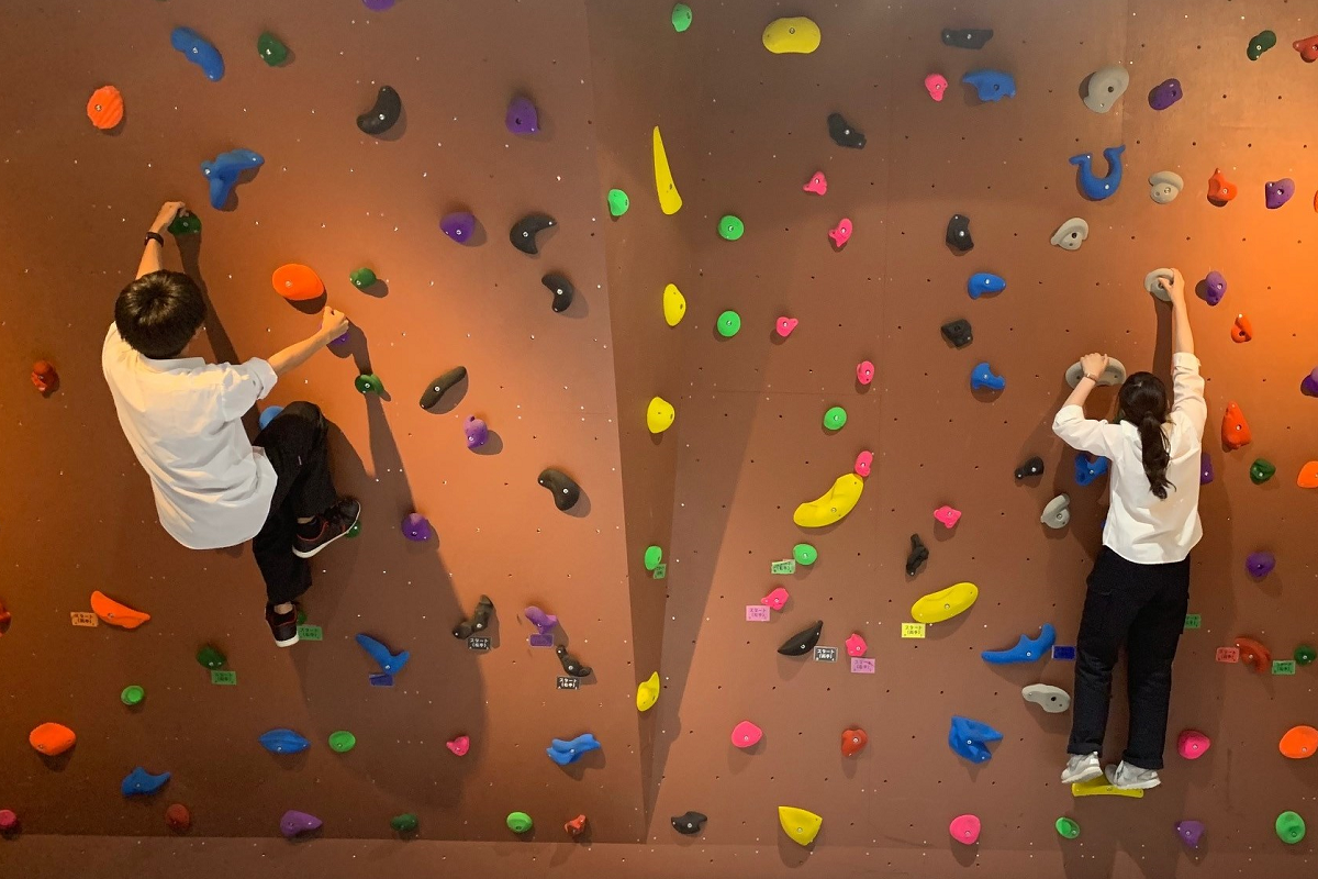 こちらの壁が野澤さんをはじめ日本工学院八王子専門学校の皆さんにボルダリングアートを描いていただくキャンバスです。