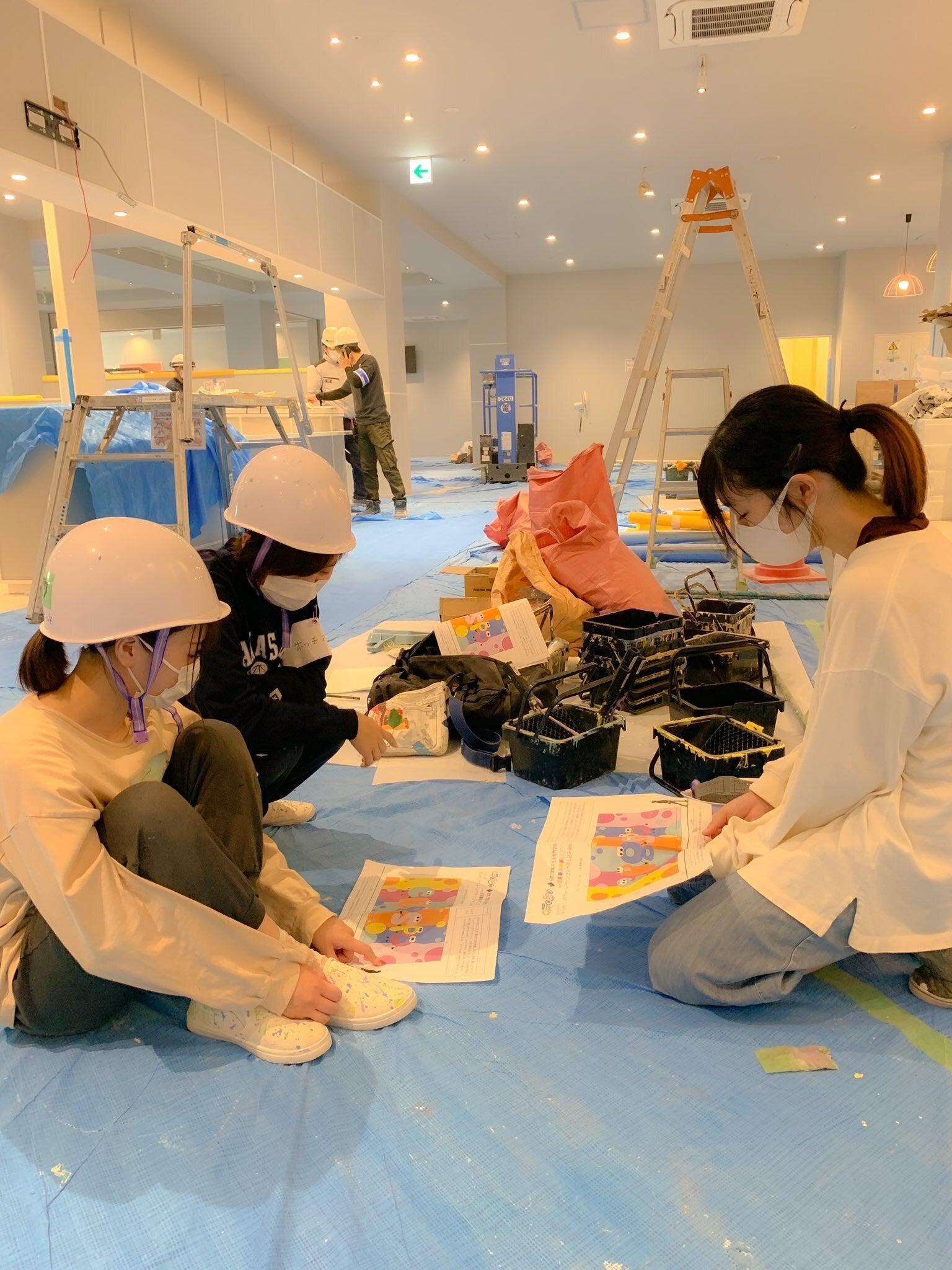 連日、野澤さんたち学生チームが一生懸命にボルダリングの壁に絵を描いてくれています。