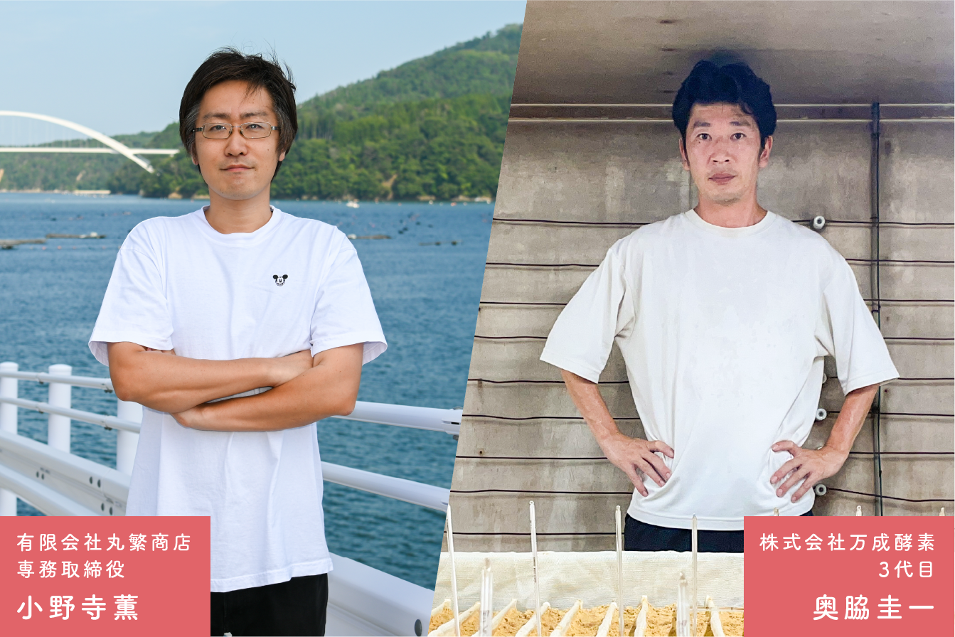 こんにちは。宮城県気仙沼市の有限会社丸繁商店・専務取締役の小野寺薫と、山梨県大月市の株式会社万成酵素・三代目の奥脇圭一です。