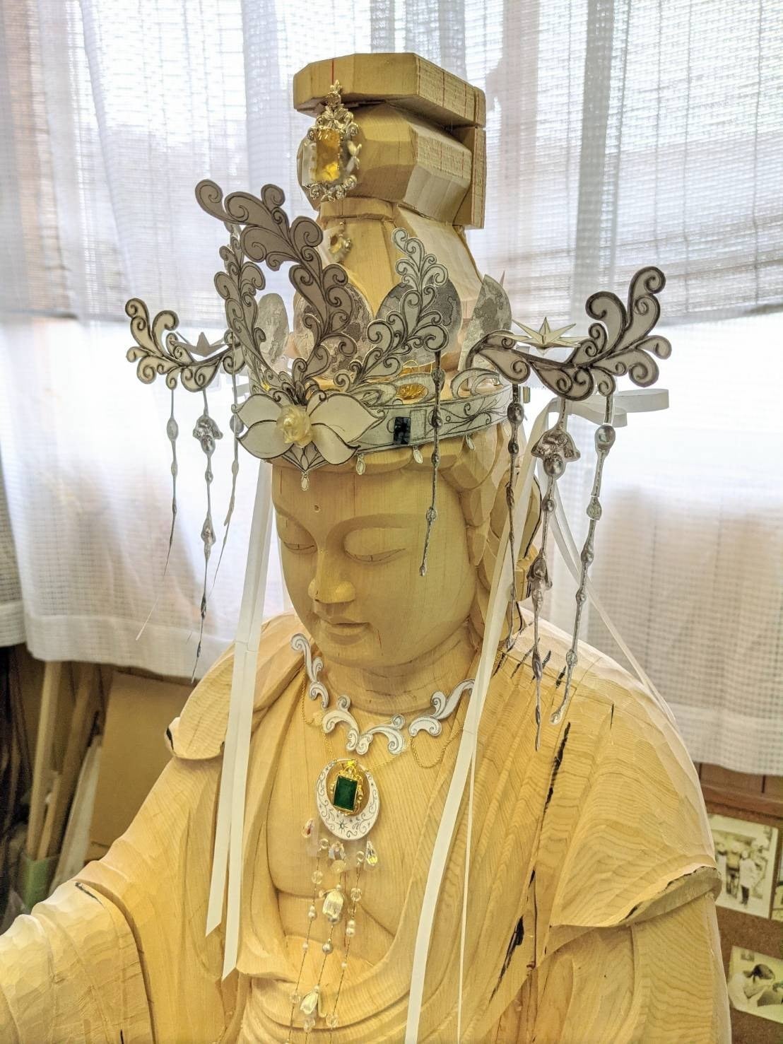 仏師の冨田珠雲さん、鍛金作家の何 惠娜(か・えな)さんのお力で着々と進み、現在は観音様のお姿が見えるまでになりました。