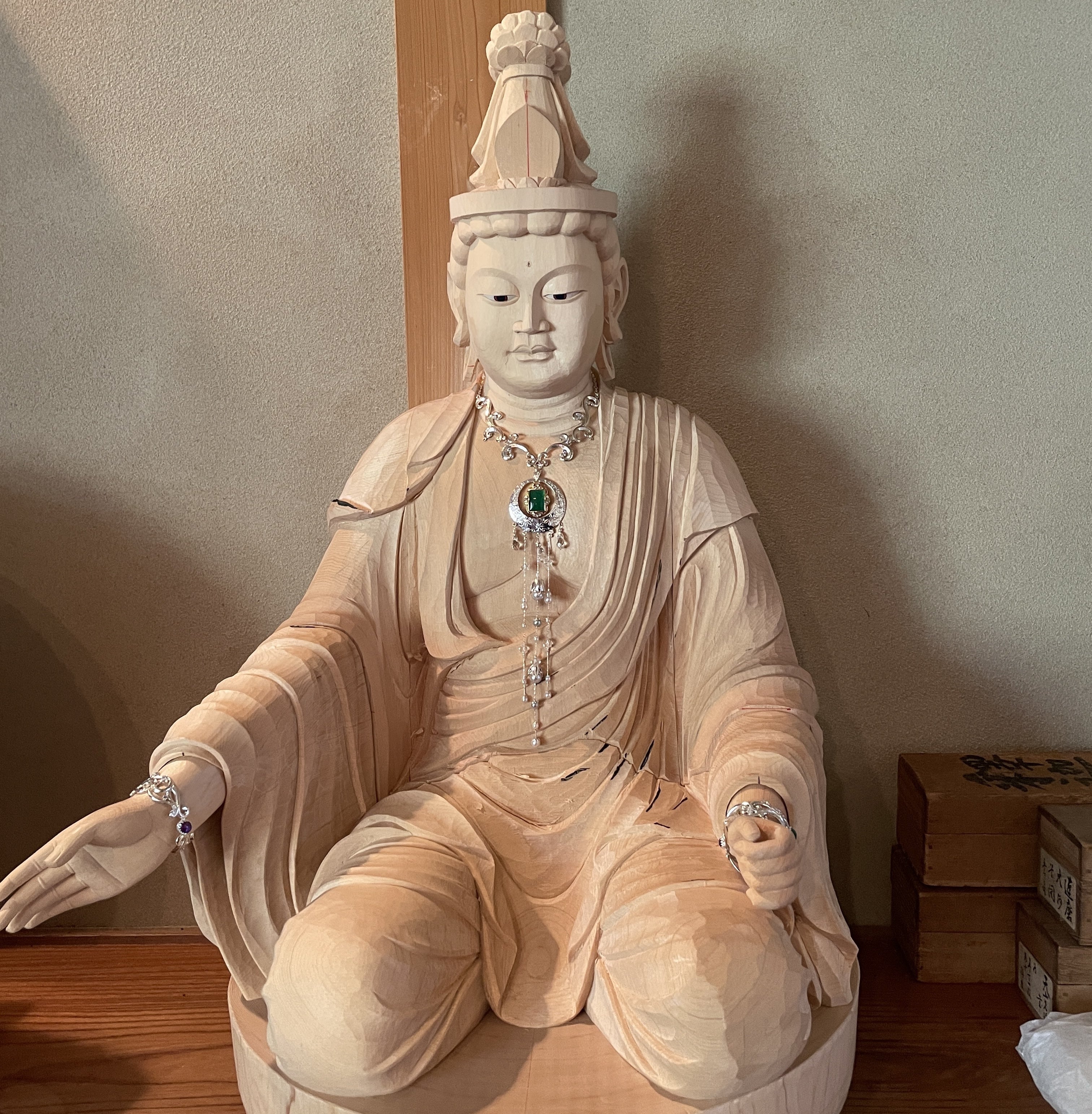 聖徳太子が制定した「十七条憲法」には、誠実であること、信頼関係を築くこと、皆で話し合うことの重要性などが記されています。私はこれこそ「和の精神」だと考えています。コロナ禍で人々が分断され、不安と猜疑心が蔓延しやすい今こそ、この考え方を体現する観音像を制作する意義があると確信しています。