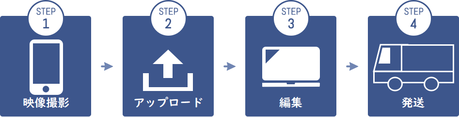 手順:①支援者様へ発送したスマホで動画撮影(10分以内、1つのみ動画)