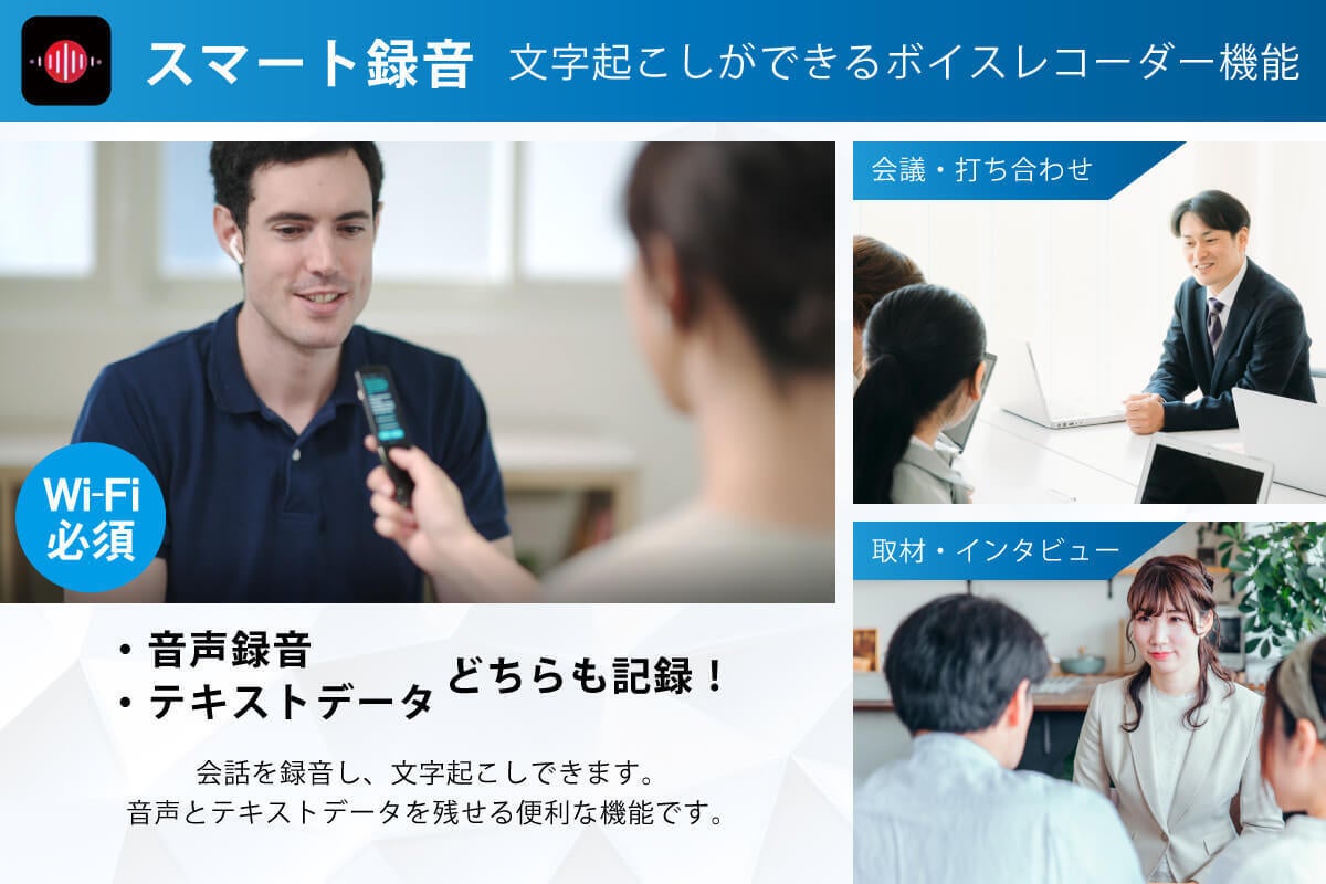 A. 双方向音声通訳とスマートレコーディング機能使用時には必要です。日本語、英語、中国語のテキストスキャン翻訳が可能です。