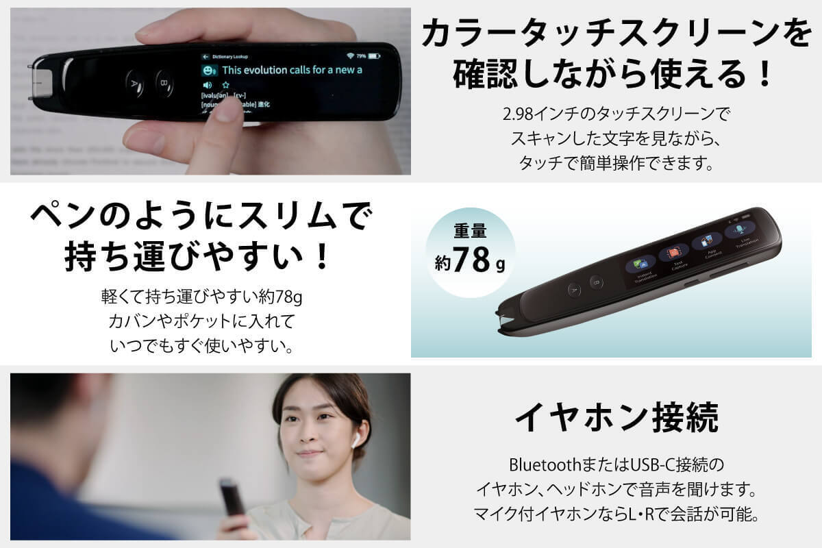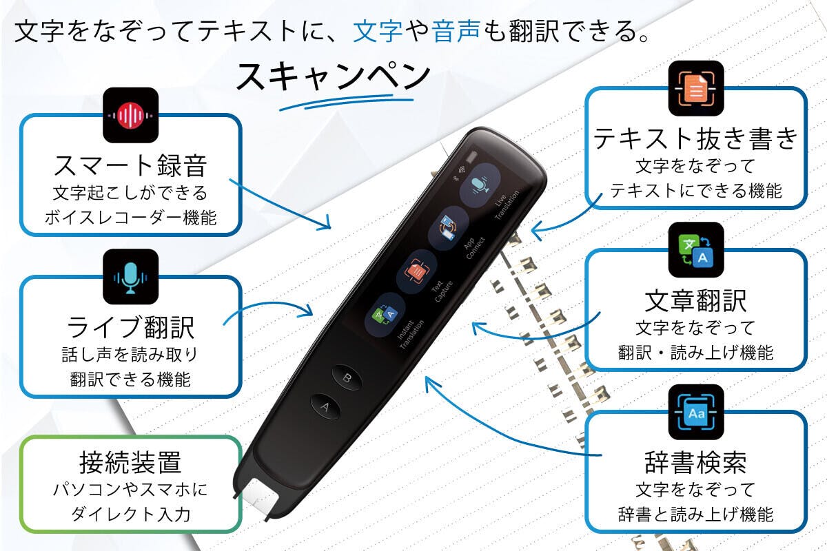 ◎ 文字をなぞってテキストに、文字や音声も翻訳できるスキャンペン