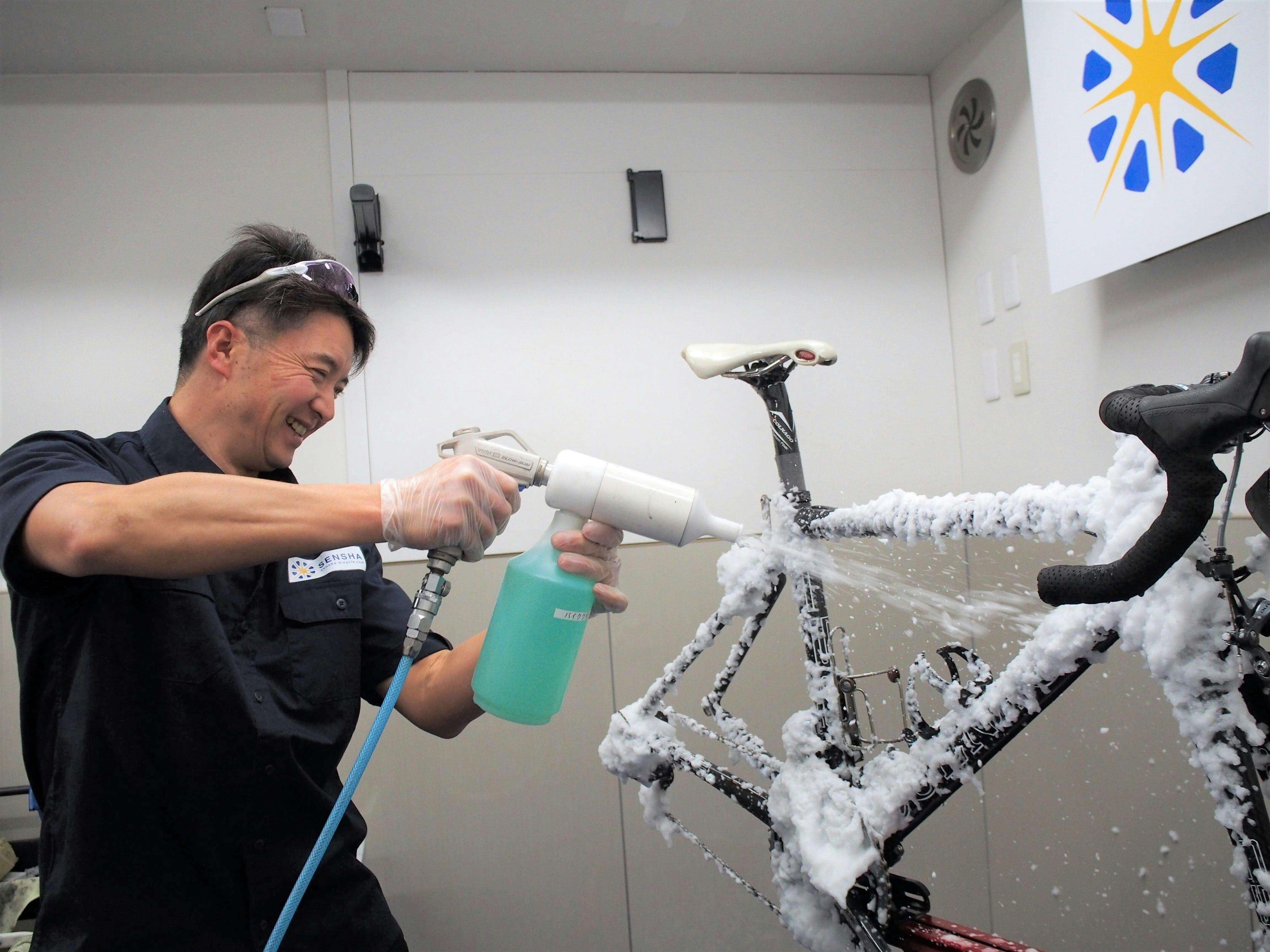 自転車って不思議な乗り物で、自転車が綺麗になると皆さん笑顔になるんです。そして、洗車を担当したスタッフも自転車が綺麗になると笑顔になります。