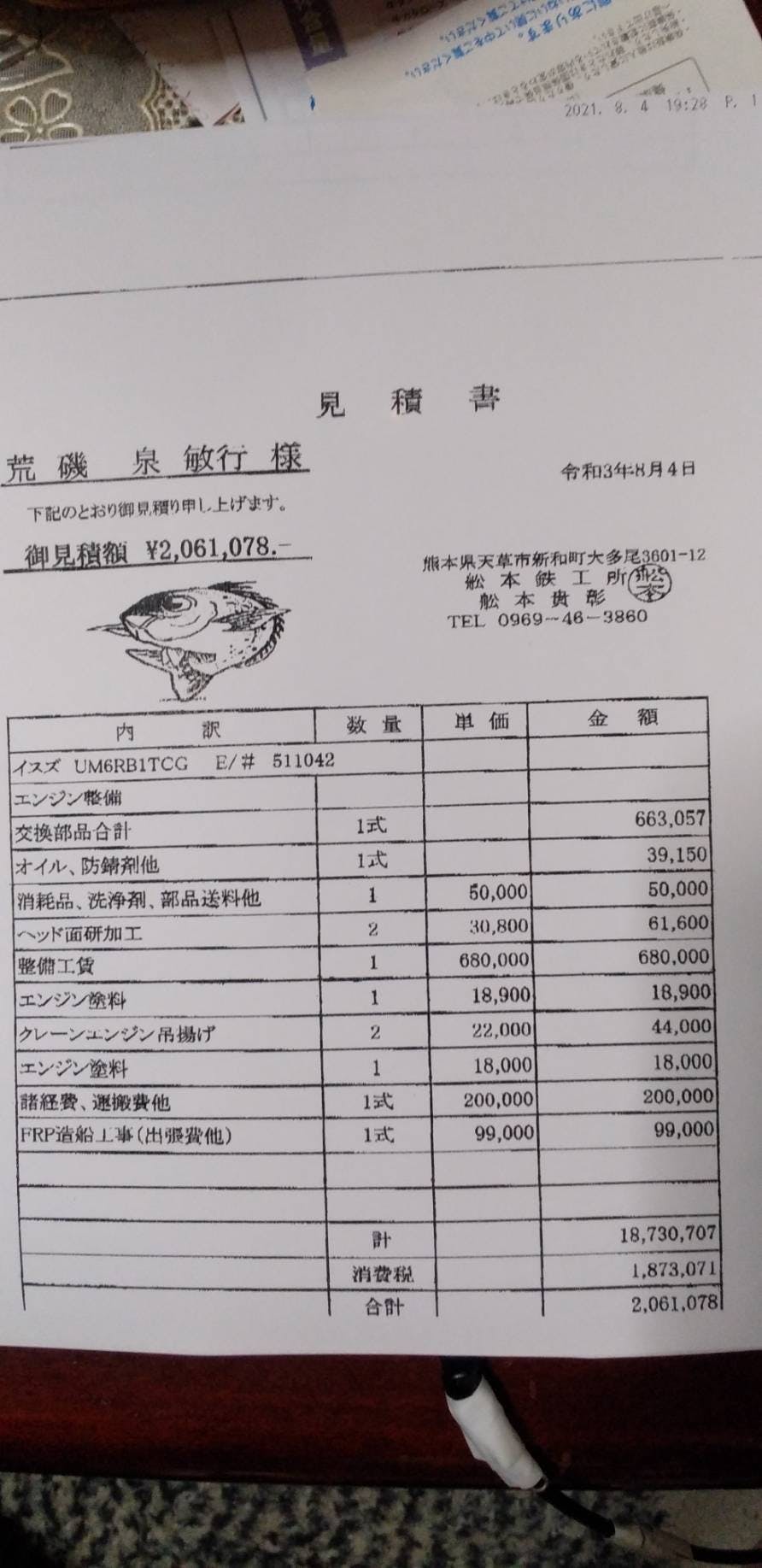 調子の悪い遊漁船のエンジンを修理し安心安全を期して1人でも多くの方に枕崎が誇る大自然を、透き通る素晴らしい海をご案内したいです。