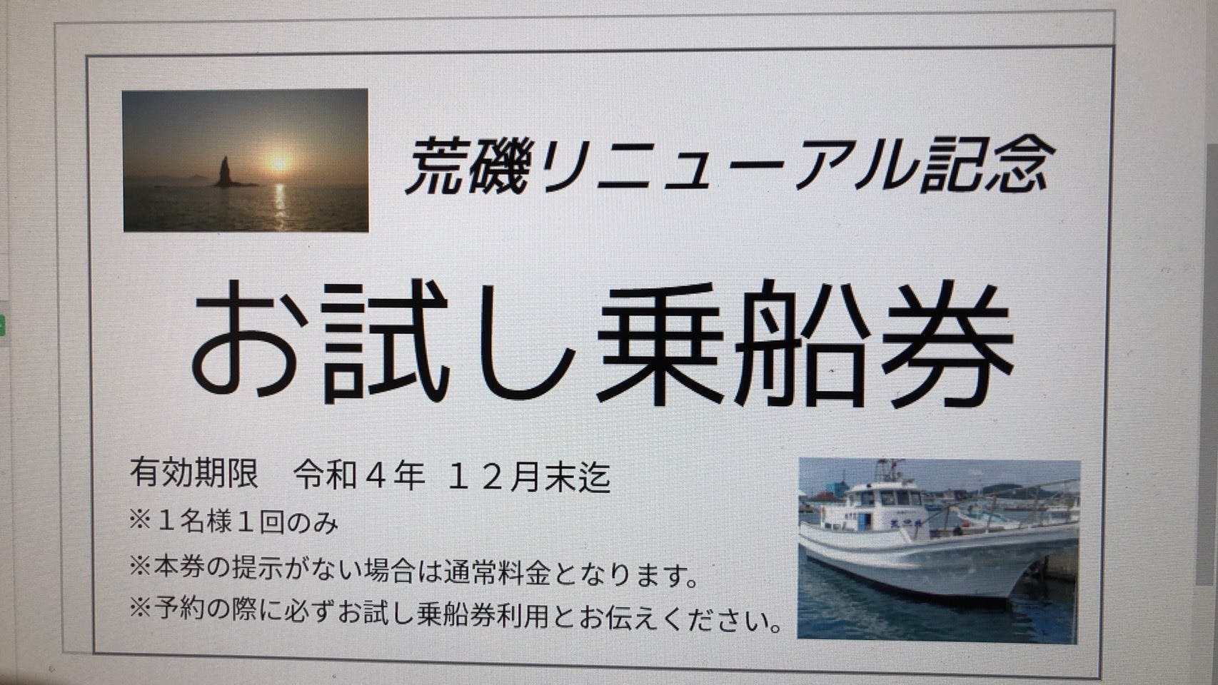 有効期限は令和4年12月末日迄となります。乗船券に記載されている電話番号に予約をして下さい。(お試し乗船券使用とお伝え下さい。)