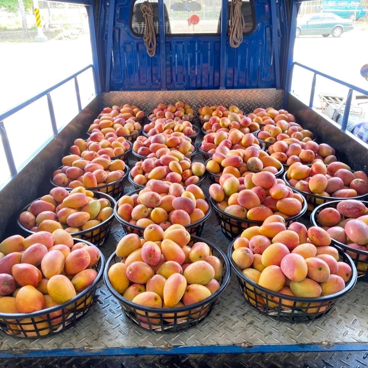 一日でトラック何台分ものマンゴーを収穫します。多い年はこのマンゴー農園だけで15万個のマンゴーを収穫します。