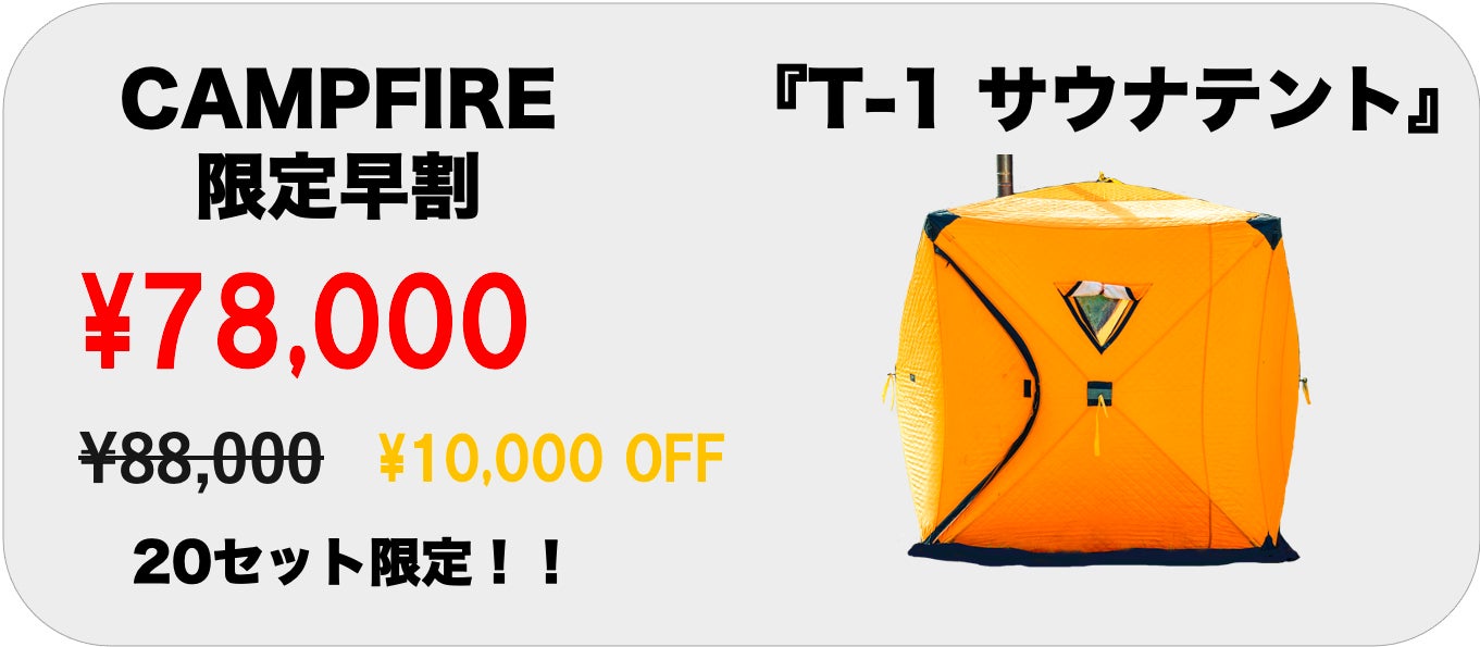 今回のプロジェクトでは『T-1』のテントサウナセットを始め、すでにテントサウナを持っている方に向けてテント・ストーブ単体のリターンも準備しています。