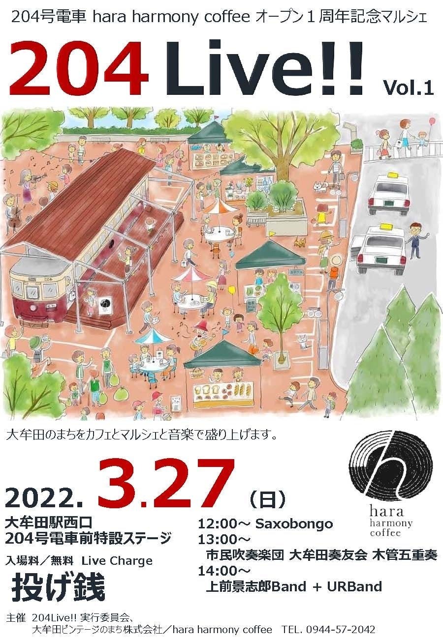 2022/03/23 21:20マルシェの学校の最終プレゼンで発表、企画された、Live &ミニマルシェを開催致します(^^)路面電車204号『hara harmony coffee』1周年記念イベントに合わせての実施です♪『204Live‼︎vol1&ミニマルシェ』3月27日(日)ミニマルシェ:11時〜15時30分LIVE:12:00 13:00 14:00場所:大牟田駅前広場特設会場皆様のご来場お待ちしています! もっと見る