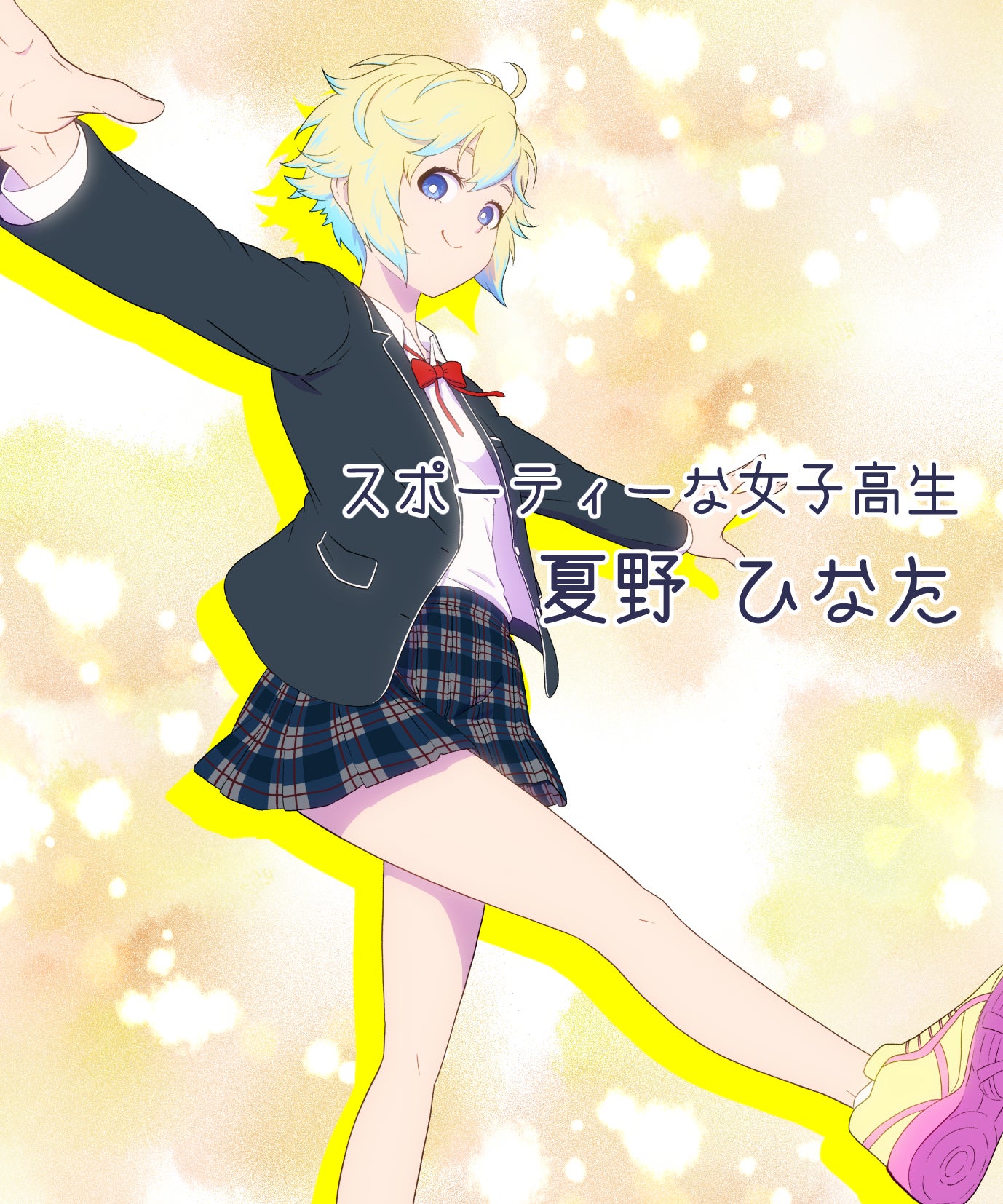 スポーティーな女子高生です。ライトイエローにブルーのメッシュが入ったショートヘアーが特徴です。