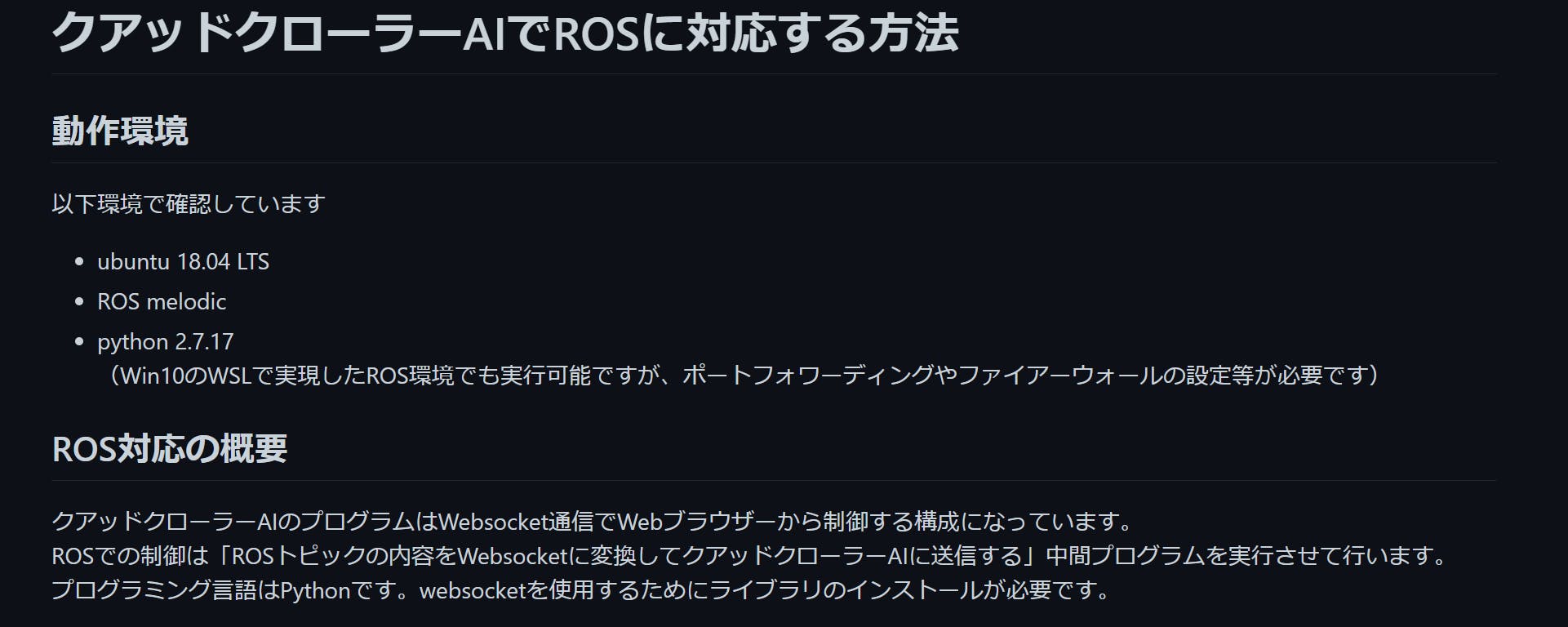 ※Websocket通信を行うROSノードプログラムが必要です。