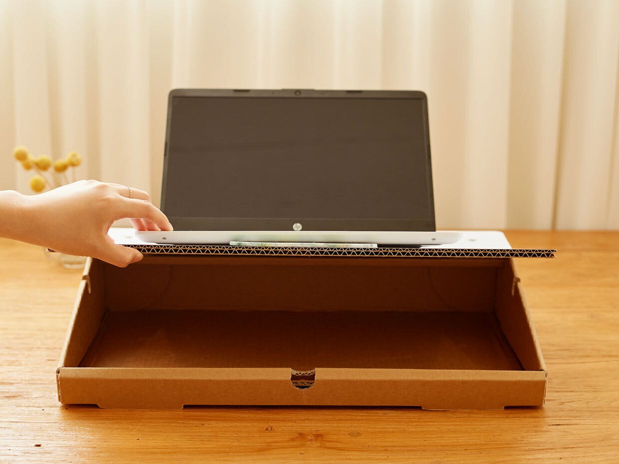 長時間の重さがかかっても耐えられるように厚さ8mmの強化ダンボールで、一般に市販されている段ボールと違い、パルプ紙の比率を高めてより丈夫な作りとなっています。
