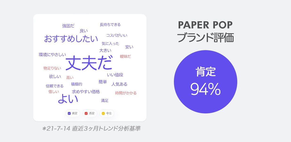 累積レビュー数1万件以上、平均評価4.6点と多くの方々からペーパーポップの好意的なレビューをいただきました。(自社モール基準)