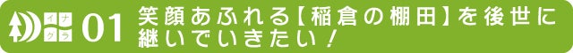 美しい景観、農村の原風景、おおらかな土地柄、この魅力的な『稲倉の棚田』をもっと多くの人に知ってもらい、訪れてもらい、笑顔があふれる場所として後世に継いでいきたい。