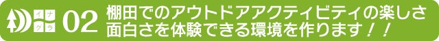また、その景観を活かして棚田CAMPや新たなアウトドアアクティビティ・フィールドとして、さらなる活用が期待できます。