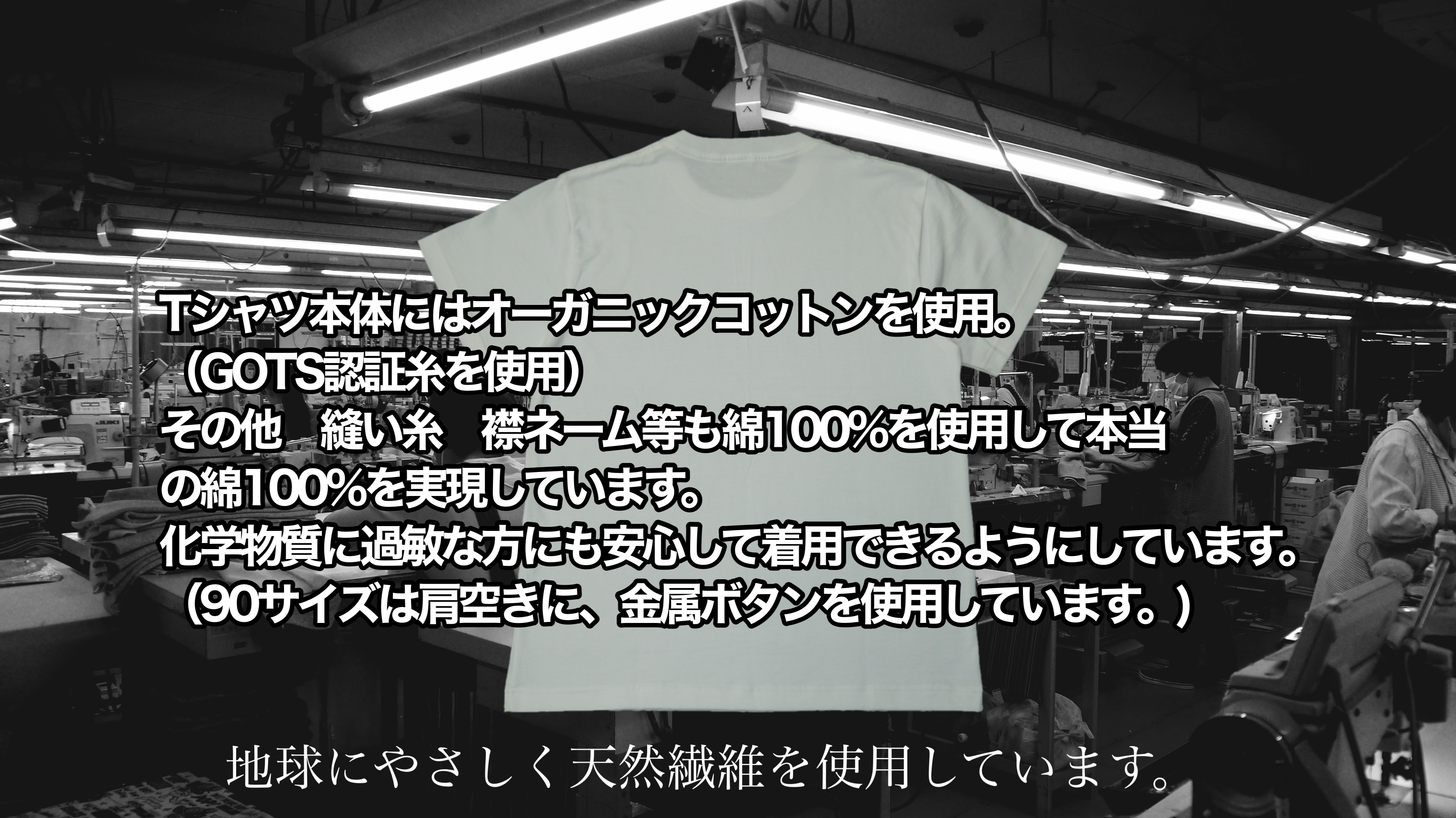 オーガニックコットン100%の30/2天竺(日本生産生地)を使用したTシャツ