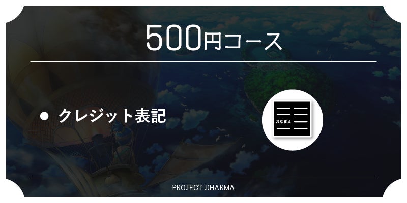 シンプルかつお手軽にご支援していただける、もっともリーズナブルなコースです。本作のエンドクレジットでご指定頂いたお名前を表記させていただきます。