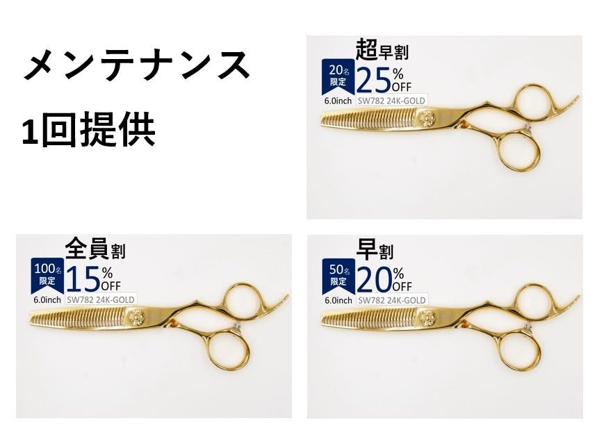このたび、本格志向のスタイリストに人気のSW782 24K-GOLD 、FS60024K-GOLD を交渉のすえ、まとめて発注することで、提供できるようになりました。