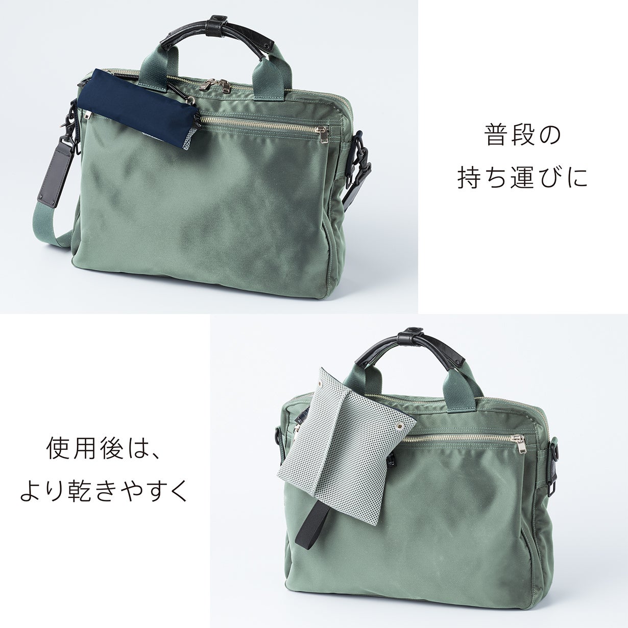 濡れたカバンも簡単サッと拭き取り。素早く水滴を吸い取ります。