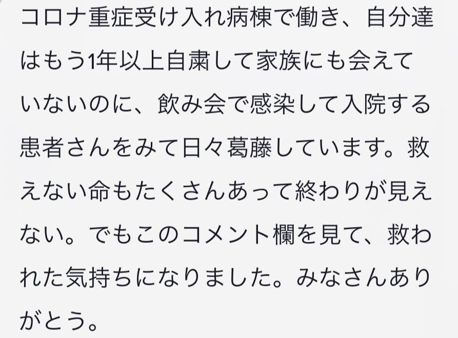 医療従事者の皆様は到に限界を超えています。