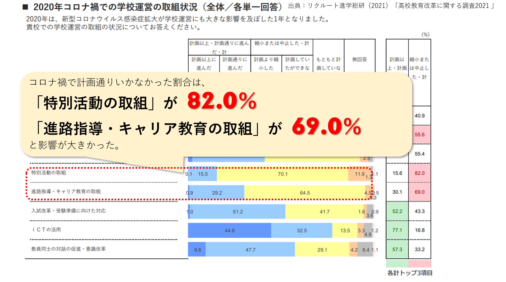 新型コロナウイルスの影響を受けて、私たちの生活も大きく変化しました。学校もその例外ではなく、感染拡大防止の観点より学校行事の中止や延期、密を避けた授業設計、課外活動の制限など学校・教員・子どもたちにも様々な影響が出ています。一部の行事は感染対策を行いながら実施されていますが、まだまだ今まで通りの実施は難しい状況が続いています。
