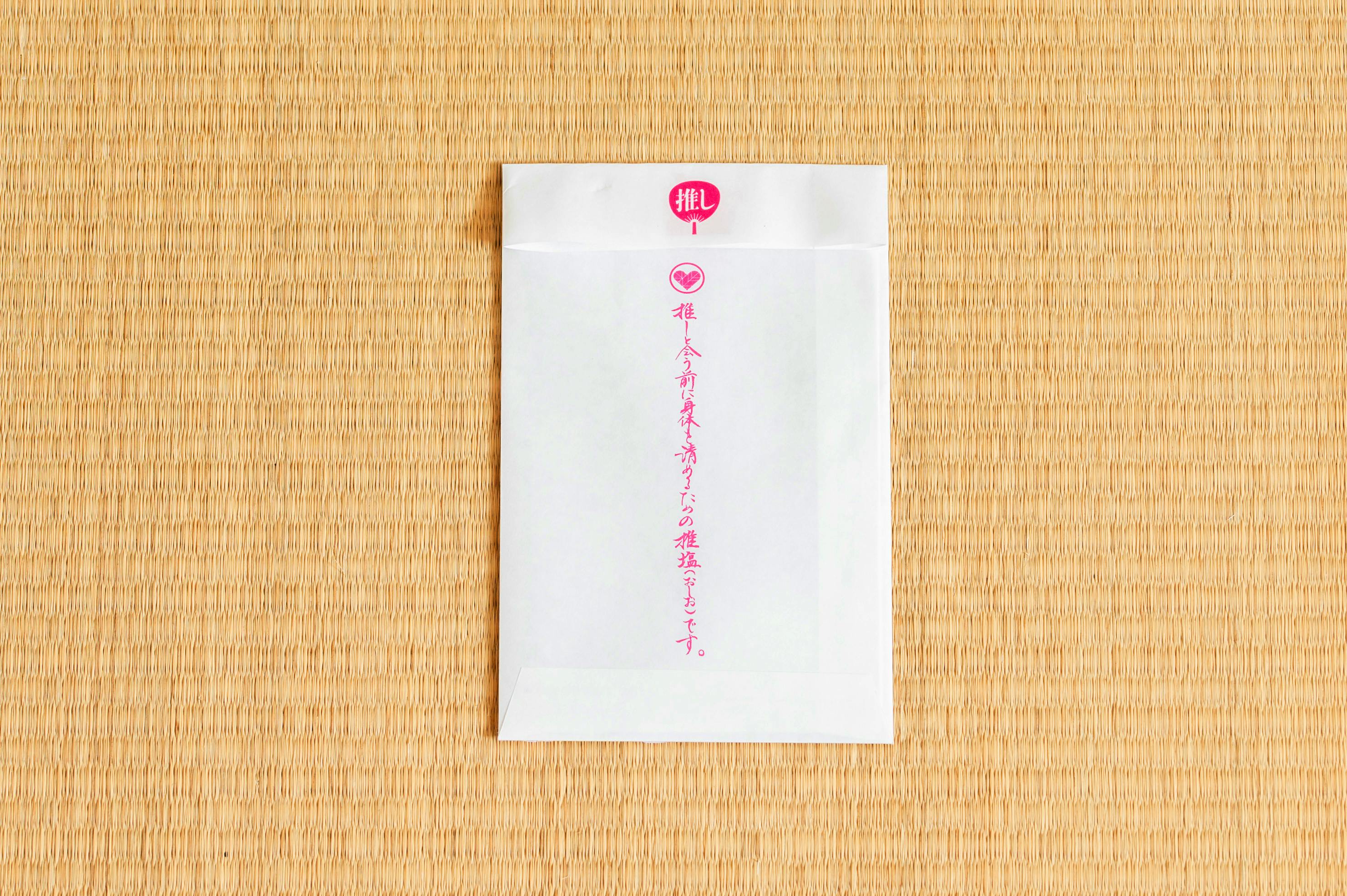推しに逢える、特別な日の前に・・・長久寺で祈願を行った推塩(おしお)をぜひご活用ください。現場へお出かけになった先で身体を清めていただく他、入浴時やうがい等にもご使用いただけます。ご祈願済み。
