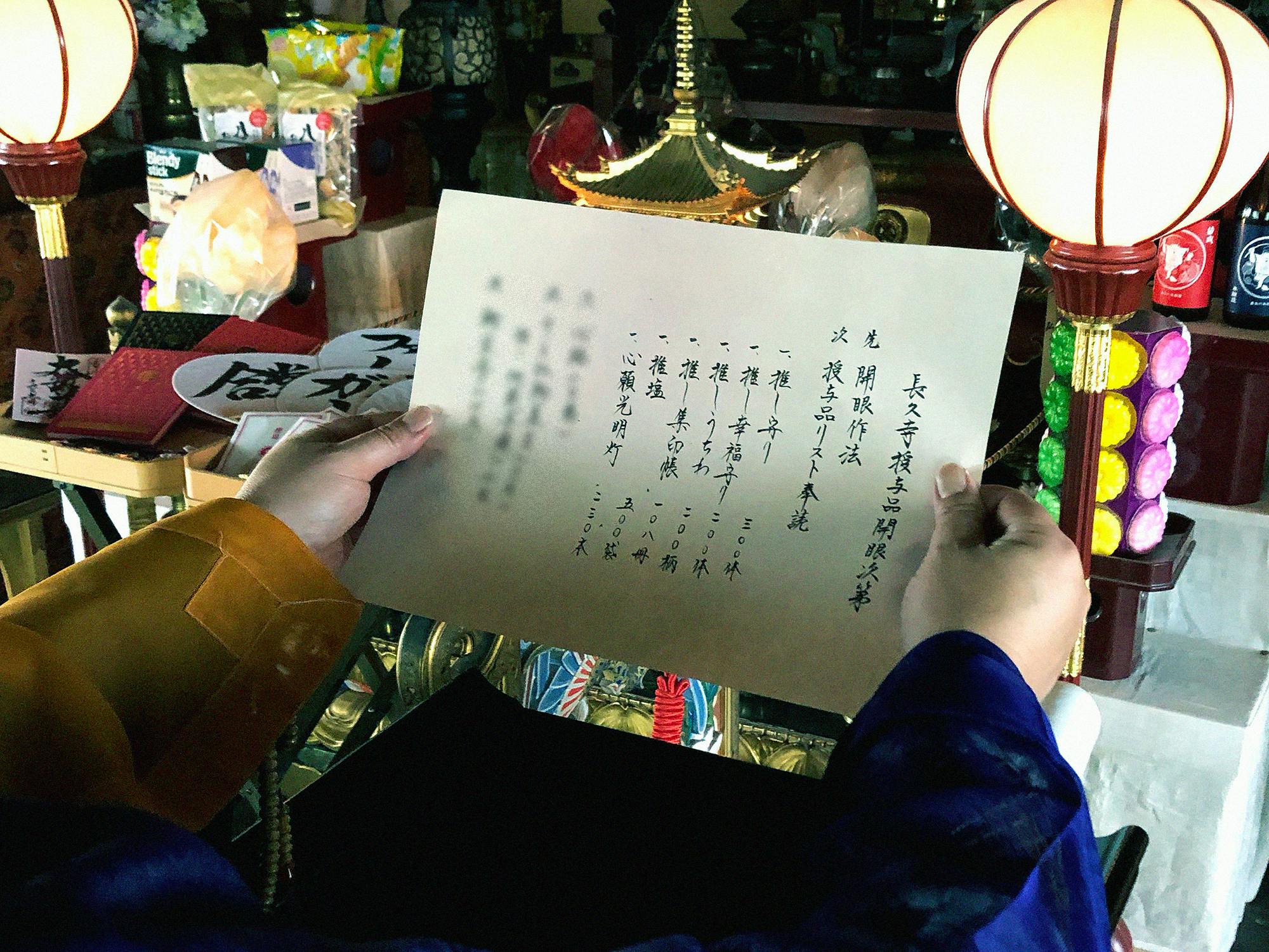 また、クラウドファンディング終了後は、新たな取り組みとして長久寺ウェブサイトにて、個別のご祈願を受け付けさせていただく予定です。長久寺ご本堂にて、お申込みされた「推しへの想い(30文字以内)・願主名」を奉読させていただき、想いが届くよう祈願(お参り)させていただきます。その証となる、朱(集)印帳にも貼り付けられる見開きタイプ(片面には推しへの想いと願主名を手書きで記載)の祈願証をお送りしたいと考えています。