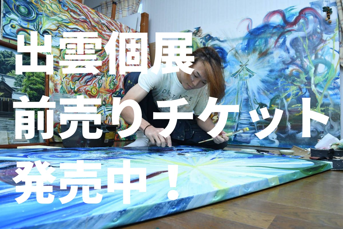 2021/10/13 20:59皆さんこんにちは!お陰様で神在月の出雲個展まで残り30日となりました!改めて告知させていただきます!八百万の神々が大集結する出雲・神在月に過去最大規模の個展を開催します!!■作品数 “50点以上”!(新作30点)■会場面積は “200平米”!(過去最大)■ライブペイントパフォーマンスも!(超大作)全国の神々が集う “出雲大社” から徒歩10分!日本古来から伝わる“日本神話”を抽象画の世界で表現します!!会期中は常に在廊予定です!神々の大集結に合わせて是非お越しください!~~~~~~~~~~~~~~~~~~~~~~~~~~~~『Happyといろ展 ~神在月に集う出雲の神々~』◆会場 :(公財)出雲市芸術文化振興財団「大社文化プレイスうらら館」ごえんホール◆会期 :2021年11月13日(土) - 11月16日(日)※15日(月)は休館日◆開館時間:11月13日(土) 13:00 - 22:0011月14日(日) 9:00 - 22:00(日本中の神々が出雲大社に大集結する日)11月16日(火) 9:00 - 19:00※会期中は常に在廊予定(会場におります)◆観覧料金:一般500円/高校生以下・障害者手帳をお持ちの方 無料※会場を借りる際に、スタッフさんに私の活動実績からプロの画家と判断され、“販売目的”として取り扱われてしまったため、大変恐縮ですが入場料を取らせて頂きます。前売り券 300円※オンラインにて事前販売します。(詳細は後日)◆休館日:月曜日(15日は休館)◆開催記念ライブペイント 11月13日(土)13:00 − 14:30会場のごえんホール内で行わせていただきます。◆(公財)出雲市芸術文化振興財団「大社文化プレイスうらら館」ごえんホール〒699-0711 島根県出雲市大社町杵築南1338-9 TEL:0853-53-6500 FAX:0853-53-2677開館時間:9:00 - 10:00※今後、掲載の個展情報に変更がある場合がありますので、お越しの際は、念のため大社文化プレイスうらら館のサイトもご確認ください。↓↓↓https://www.izumo-zaidan.jp/urarakan/◆個展への想いこの度、クラウドファンディングの目標金額達成に伴い、大社文化プレイスうらら館にて『Happyといろ展 ~神在月に集う出雲の神々~』を開催する運びとなりました。今回は、24年間の人生の節目にその集大成としてほぼ新作を揃えた50点以上を展示させて頂きます。これまで繋がり合えたヒトやモトとのご縁に感謝を込めて、私が生まれ育った出雲地方から日本神話の世界観を抽象的な絵で表現致します。全国的に旧暦の10月は“神無月”ですが、出雲だけ“神在月”と呼ばれます。それは出雲こそが最古の日本神話の大舞台であり、神々の首都と呼ばれるほど特別な土地だからです。そんな神在月の出雲に日本神話を絵で表現することで、そこに込められた命の繋がり・人と人の繋がりの有り難さや尊さ、日本人の精神性の素晴らしさを少しでも感じられるきっかけをお届けしたいと考えております。コロナ禍の状況下、移動の方が難しい状況ですが、皆様にご高覧いただければ幸いに存じます。なお、美術館では新型コロナウイルス感染防止対策へのご協力のお願いをしております。詳しくは、サイト (https://www.izumo-zaidan.jp/urarakan/urara_news/1195) をご覧ください。何卒よろしくお願い申し上げます。いつも画家Happyといろを応援してくださり、本当にありがとうございます。◆作品一覧1,「国生み」F302,「淤能碁呂島(オノゴロジマ)」F503,「大八洲国(オオヤシマグニ)」F80×24,「神生み」M1005,「火之迦具土神(ヒノカグツミノカミ)」F306,「伊邪那岐伊邪那美(イザナギイザナミ)」F807,「三貴神(ミハシラウズノミコト)」M1008,「天の岩戸隠れ(アマノイワトカグレ)」P1009,「天照白菊(アマテラスシラギク)」F2010,「神迎え」F3011,「神等去出(カラサデ)」F3012, 「月読尊(ツクヨミノミコト)」F5013,「宇迦之御魂神(ウカノミタマノカミ)」F3014,「付喪神(ツクモガミ)」M5015,「八百万(ヤオヨロズ)」F10016,「アマビエ」F15 17,「野見宿禰命(ノミノスクネノミコト)」P818,「菅原道真公(スガワラノミチザネコウ)」F619,「出雲の阿国」F420,「英霊」F3021,「かぶろぎ熊野大神櫛みけぬの命」F10022,「稲田姫命(クシイナタヒメノミコト)」F15 23,「素戔嗚尊(スサノオノミコト)」F5024,「須勢理毘売命(スセリビメノミコト)」F1525,「因幡(イナバ)」F3026,「少彦名命(スクナビコナノカミ)」F0 27,「大国主命(オオクニヌシノカミ)」F50 28,「大物主命(オオモノヌシノカミ)」P2029,「国造り」P80 30,「天穂日命(アメノホヒノミコト)」F2031,「武御雷之男神(タケミカヅチノオノミコト)」F2032,「国譲り」M5033,「古代出雲神殿(コダイイズモシンデン)」F100 34,「天照大御神(アマテラスオオミカミノミコト)」F50 35,「猿田彦大神(サルタヒコノオオカミ)」F3036,「邇邇芸尊(ニニギノミコト)」F3037,「木花咲耶姫(コノハナサクヤビメ)」P5038,「海幸彦山幸彦(ウミサチヒコヤマサチヒコ)」P8039,「鵜葺草葺不合命(ウガヤフキアエズノミコト)」F5040,「神武天皇(ジンムテンノウ)」P10041,「縁(エニシ)」10m×14042,「神議り(カムハカリ)」F100×343,「結び(ムスビ)」ロールキャンバス10m×14044,「龍頭々滝(リュウズガダキ)」P1545,「美保神社(ミホジンジャ)」F1546,「七福神の堀川遊覧」P50 47,「縄文杉」規格外48,「人
